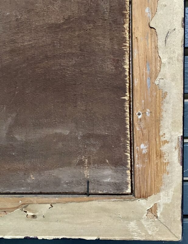 Probabile reintelatura, come suggerisce il retro della tela applicata al supporto ligneo.