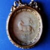 “Agnus Dei” a doppia faccia, ceroplastica a bassorilievo, datata 1731. Cornice in legno dorato coeva. Buono lo stato di conservazione.