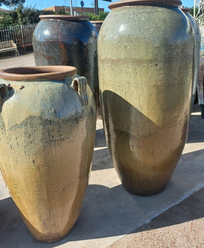 Anfore in terracotta smaltata di vari colori e tonalità in ottime condizioni vendibili singolarmente o a multipli. Trasporto personalizzato da concordare