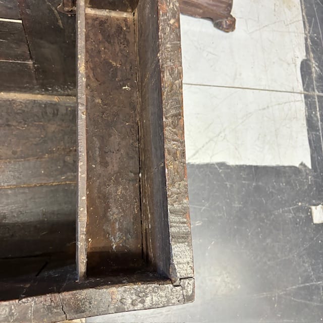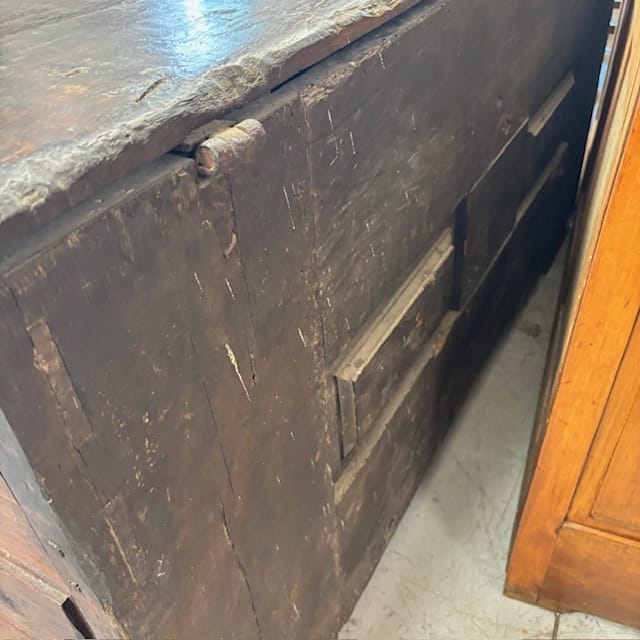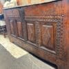 Antica splendida cassapanca cassone XVII secolo quercia . Tutta intagliata Intagliato. Fascino del tempo in patina , Mis 166 x 58 h 78 Buono stato di conservazione .
