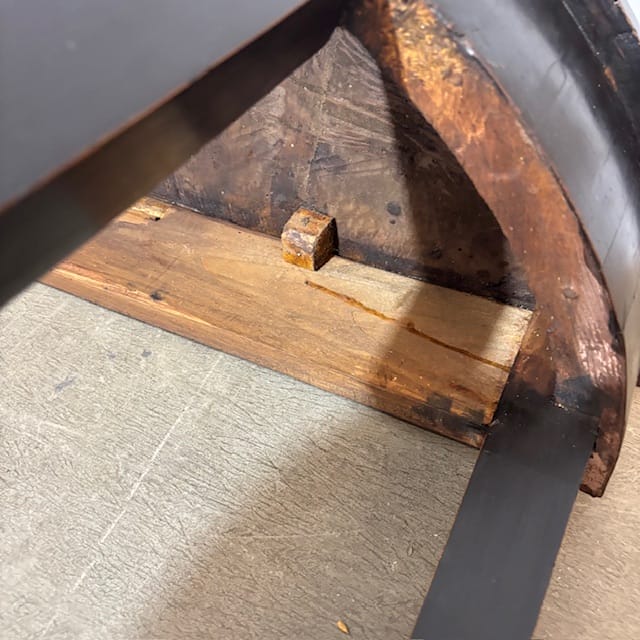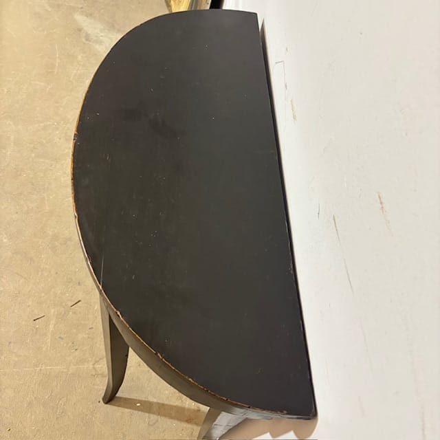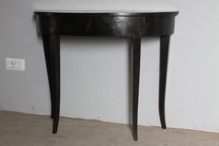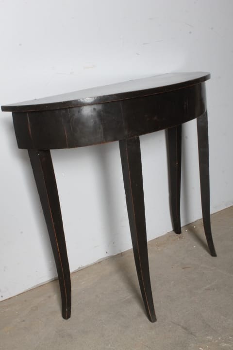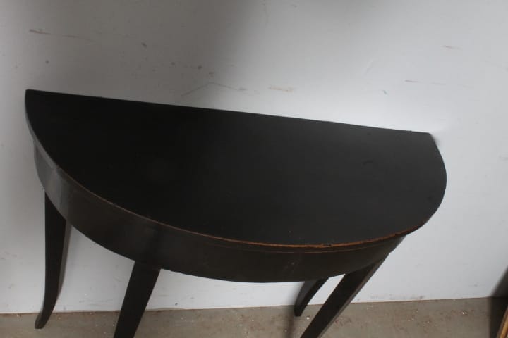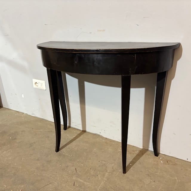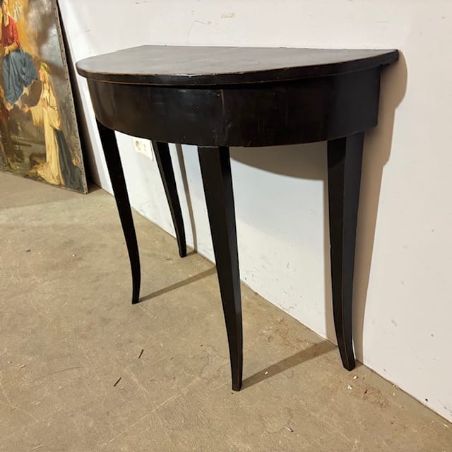 Antica graziosa Console /tavolinetto mezzaluna Luigi XVI fine 700 laccata nera , Siena . Restaurata mantenendo la sua patina originale Mis 89 x 34 (profondità massima ) . h 71