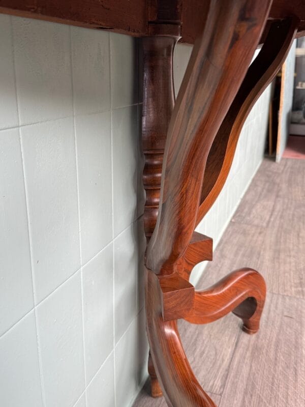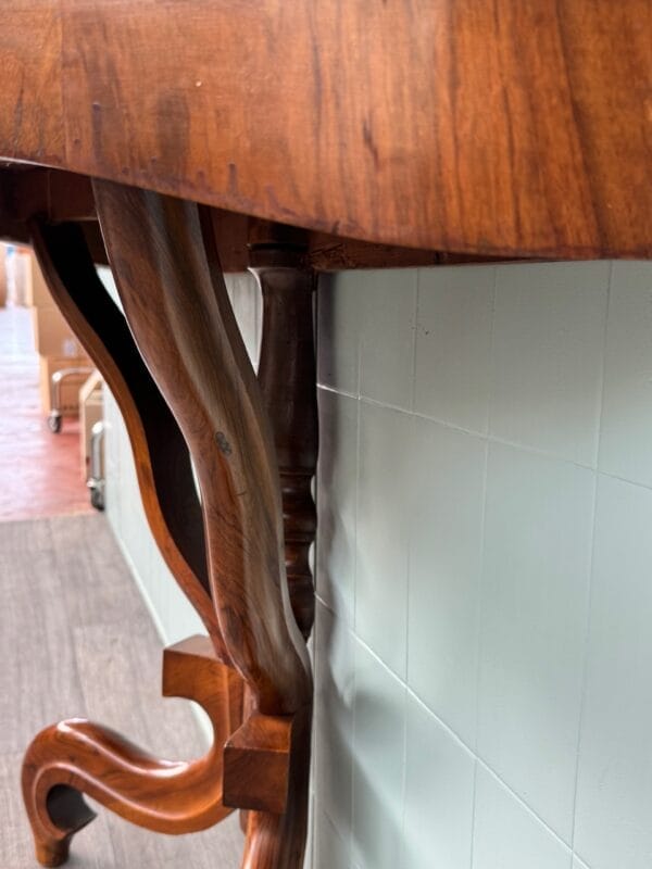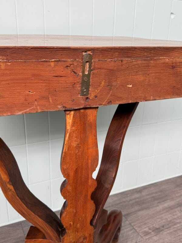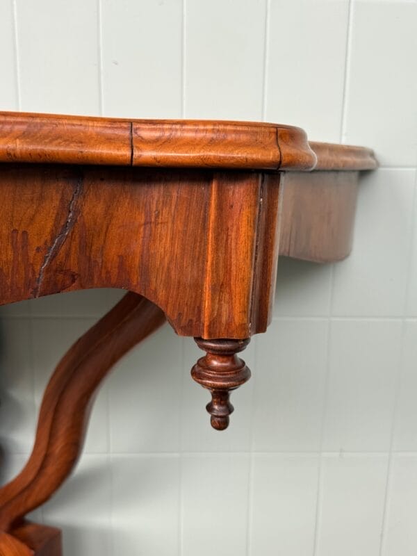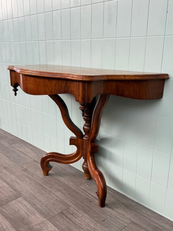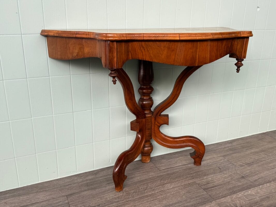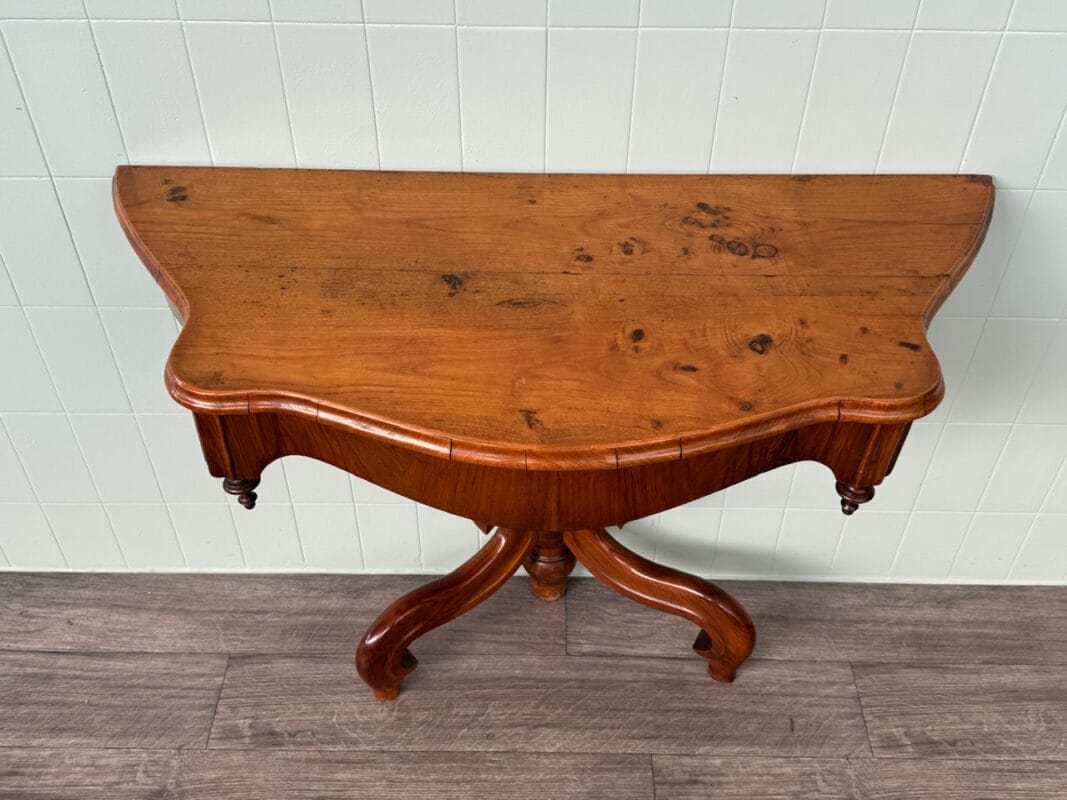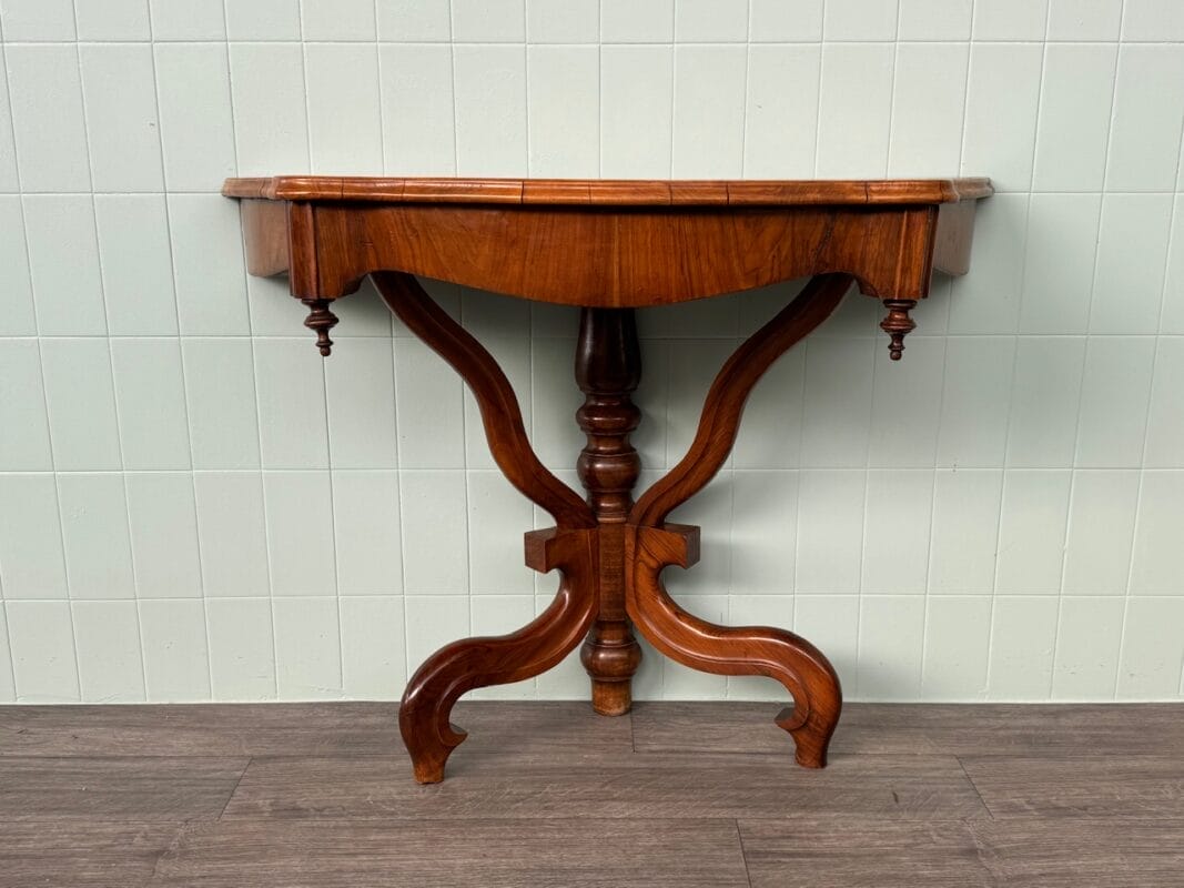 Priva di linee rette ma ricca di movenze, questa consolle in noce, nasce nell’800 ed oggi è a disposizione per una parete raffinata e protagonista.