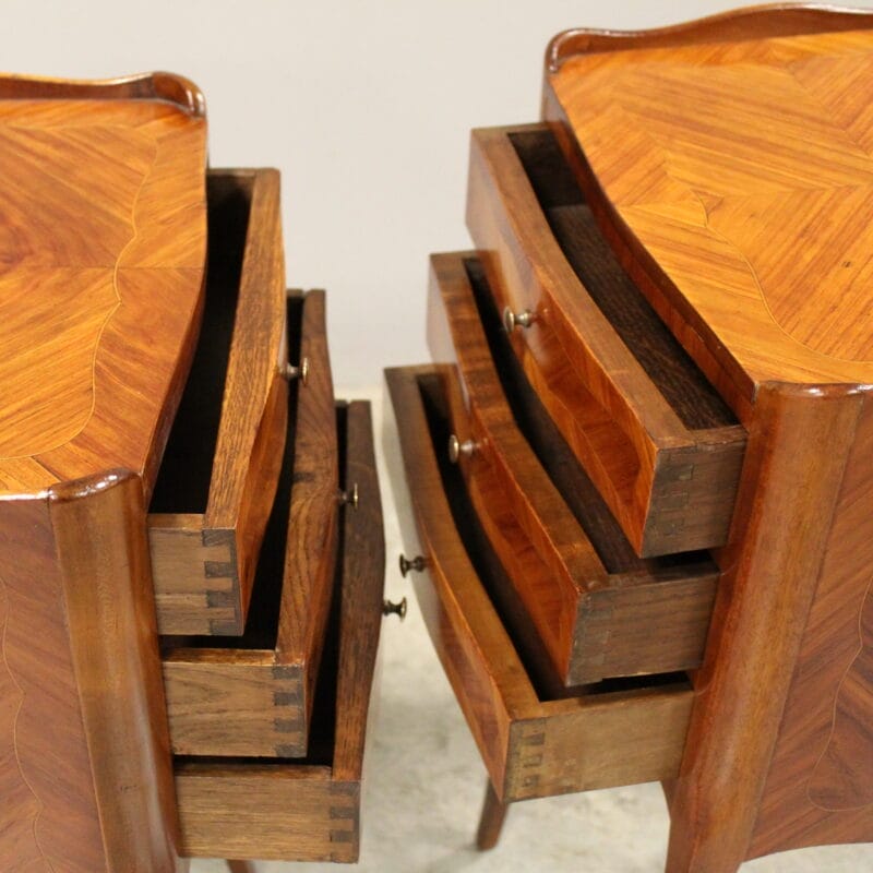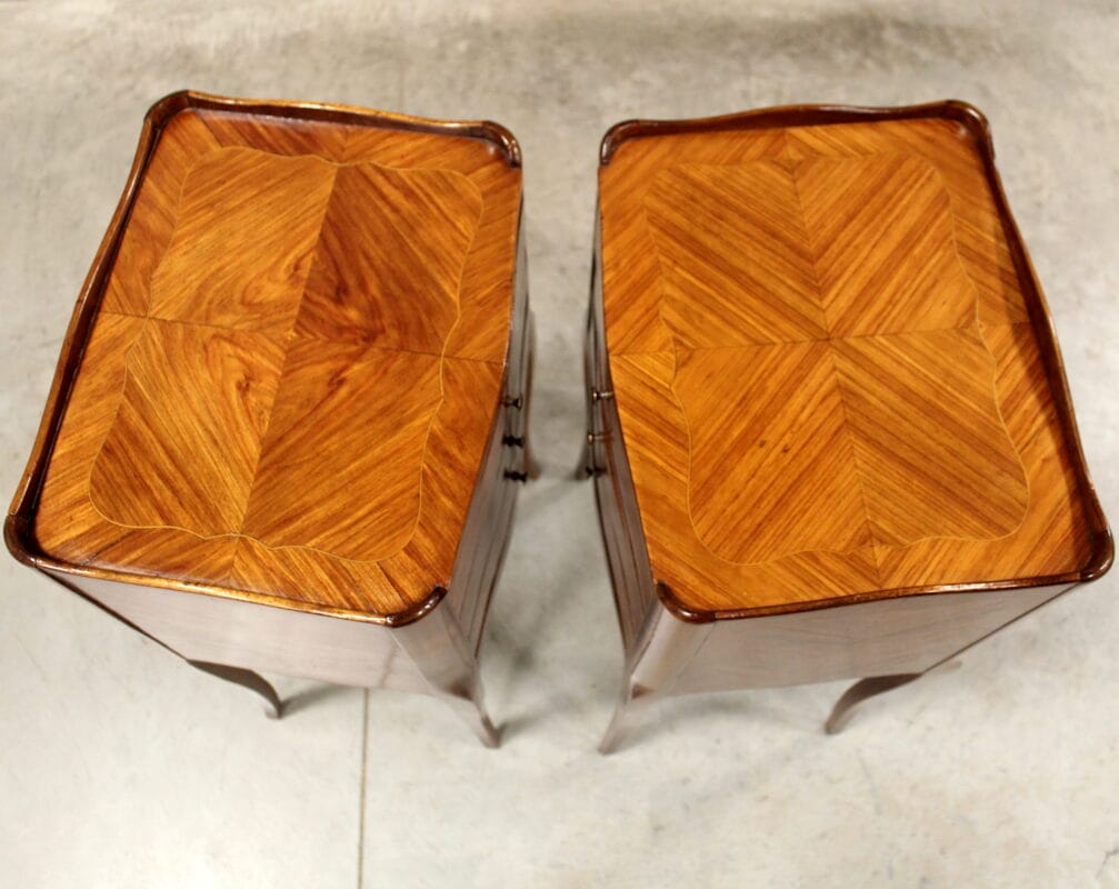 In bois de rose a marqueterie, filettati in legni pregiati – con 3 cassetti