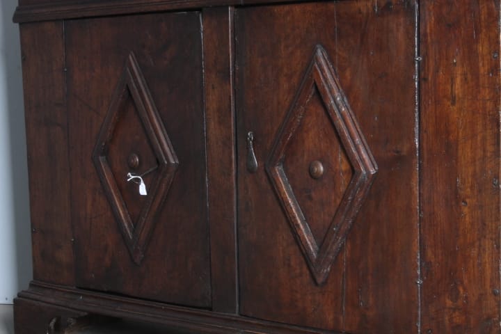 Antica credenza- dispensa Umbra epoca XVII sec noce massello con due sportelli e piano a ribalta con vano contenitore. La credenza presenta Alcune Parti sostituite /restaurate nel tempo . Mobile restaurato con finitura a cera . Mis 156 x 39 h 105 Pronta da inserire in casa.