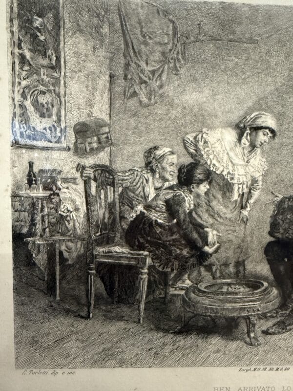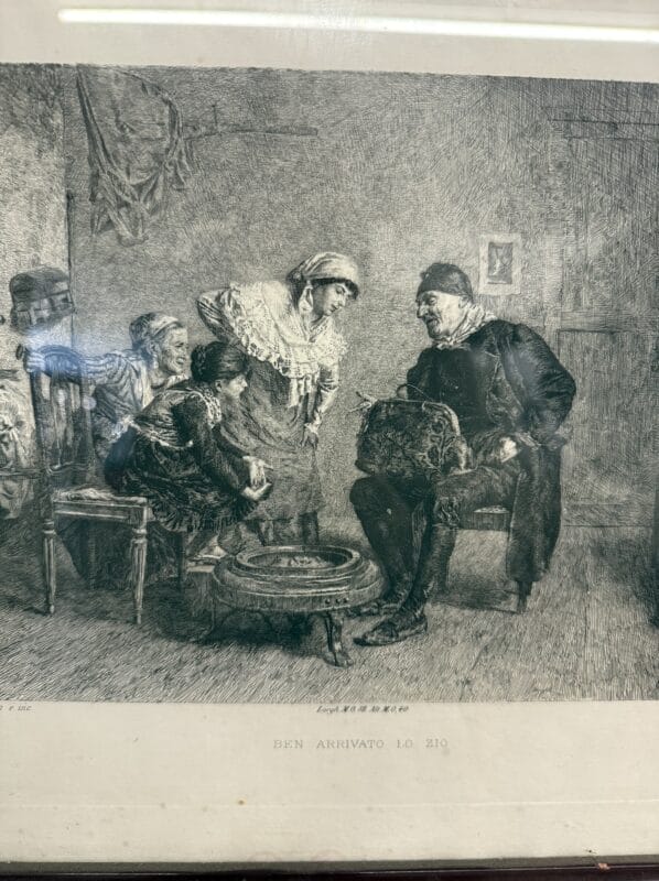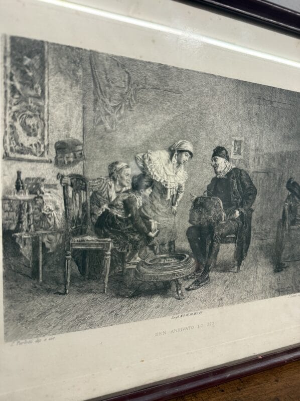 Antica incisione fine ‘800 Celestino Turletti. Ben arrivato Lo Zio, 44x32cm. Ottimo stato PER MAGGIORI FOTO ANCHE DEI DETTAGLI VI INVITIAMO A VISUALIZZARE LA GALLERIA SUL NOSTRO SITO WWW.ANTIQUARIATOCOSTA.COM