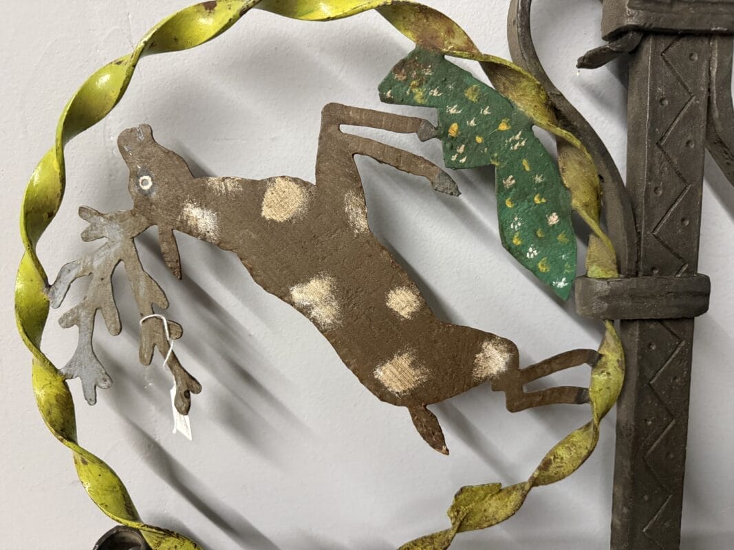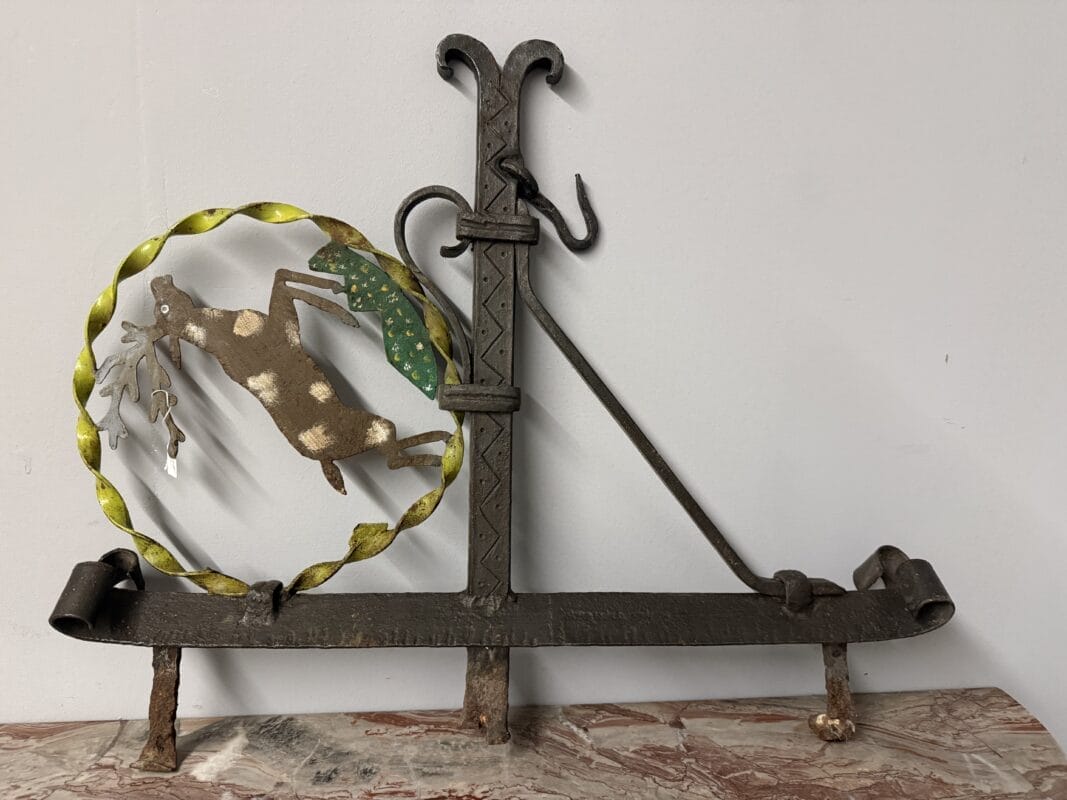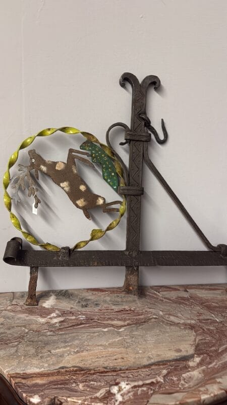 Rara e antica insegna/base lampada, in ferro battuto con Cervo epoca XVIIIsec, 68x59cm. Stato buono, leggere usure dovute al tempo.