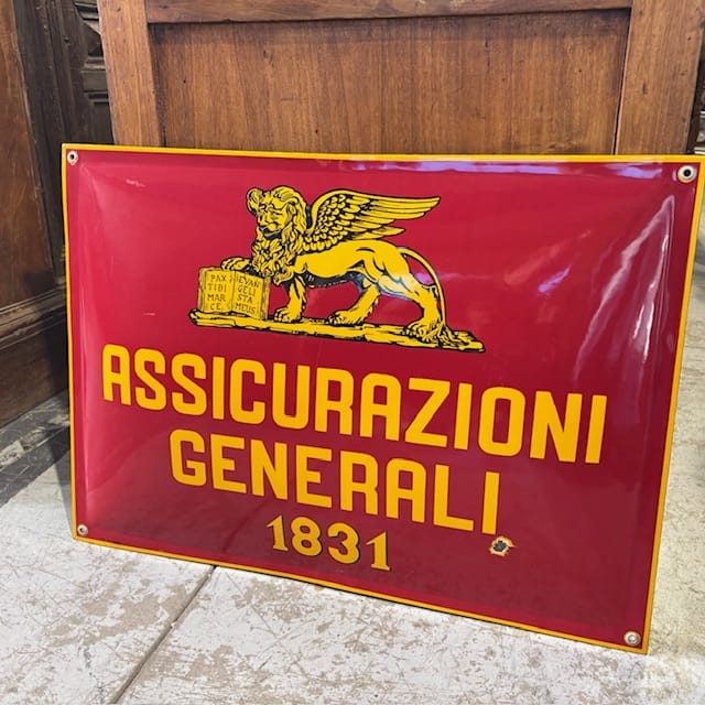 Antica insegna bombata Generali Assicurazioni smaltata.