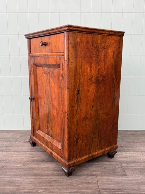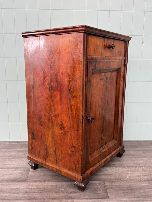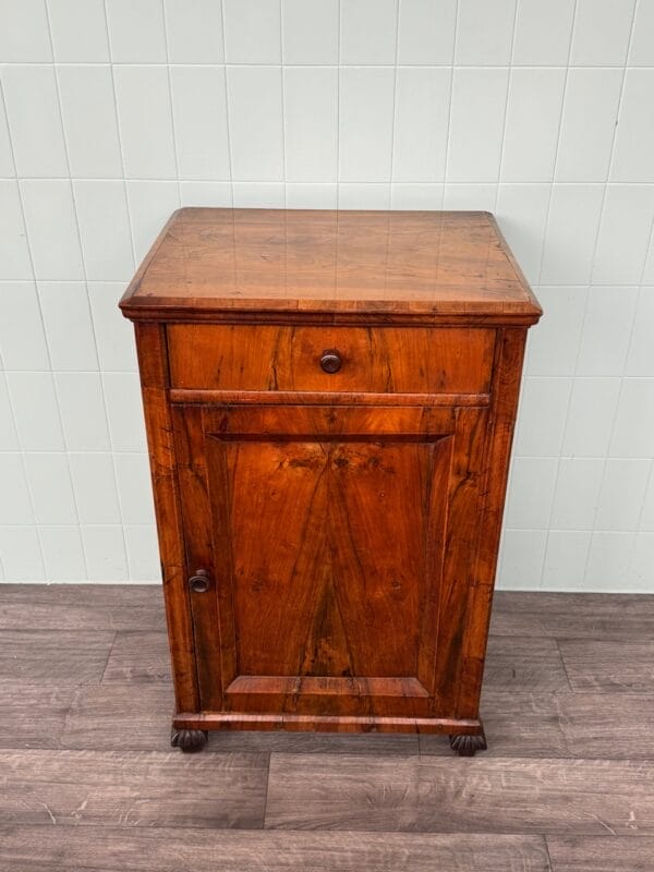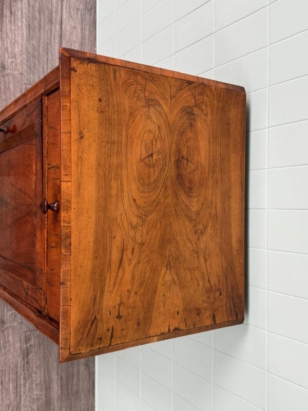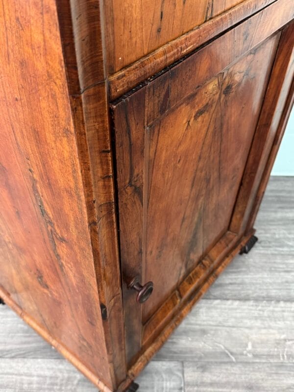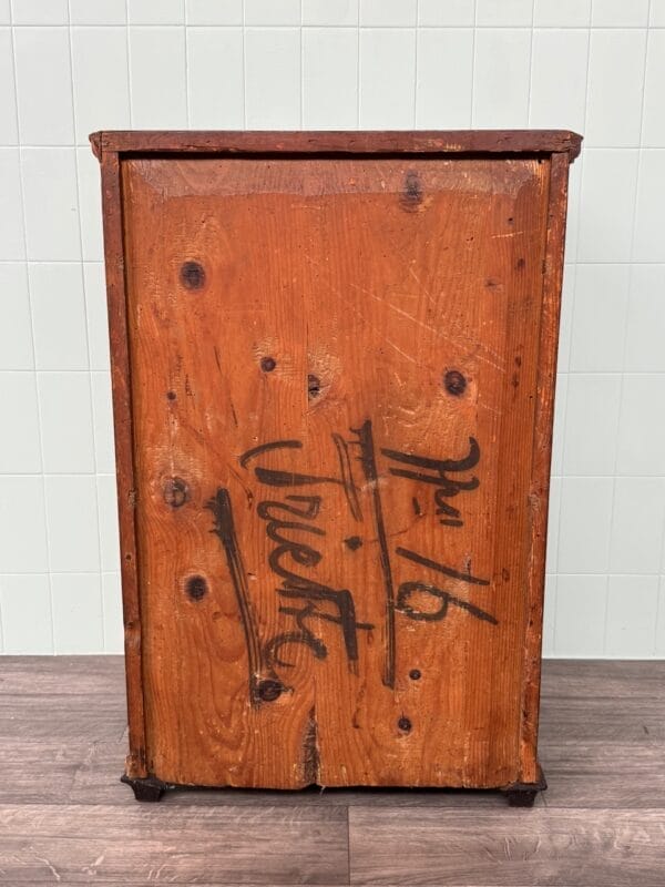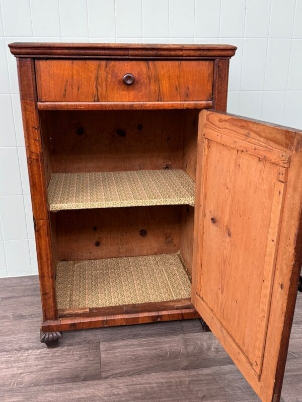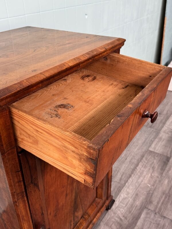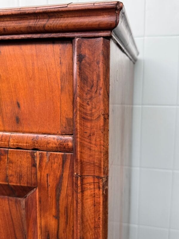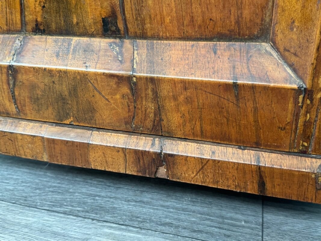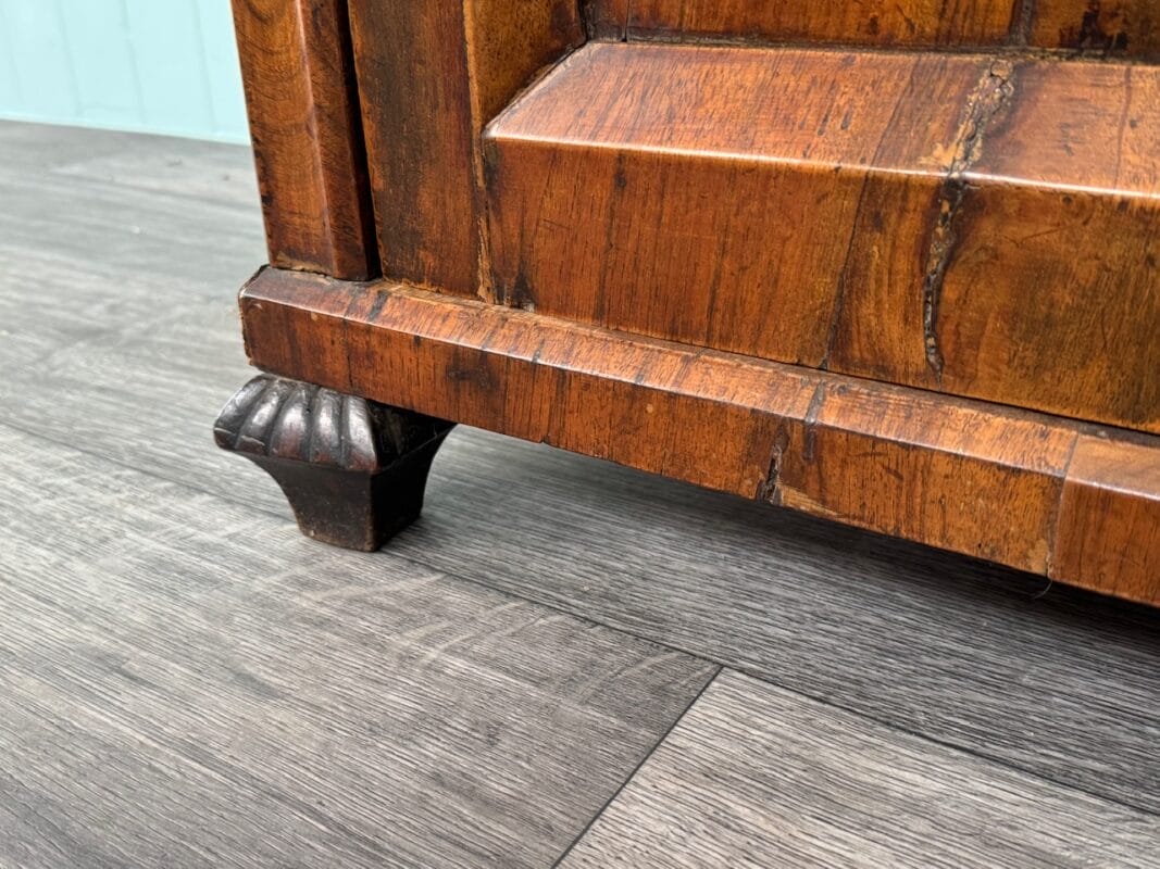 Particolare la forma delle gambe intagliate ed anche i pomelli in legno.