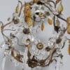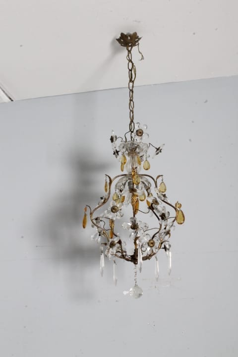 Antico e grazioso Lampadario Liberty , epoca 1930 circa , struttura in metallo con pendenti e fiori di cristalli 1930 .Elettrificato . Mis H cm 60 più catena cm 40 . diametro cm 30 .
