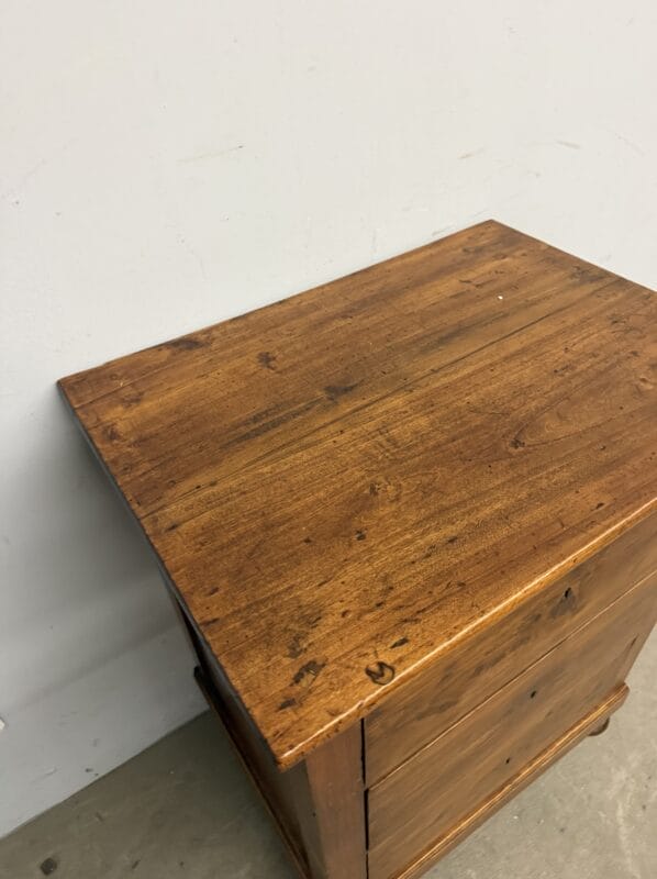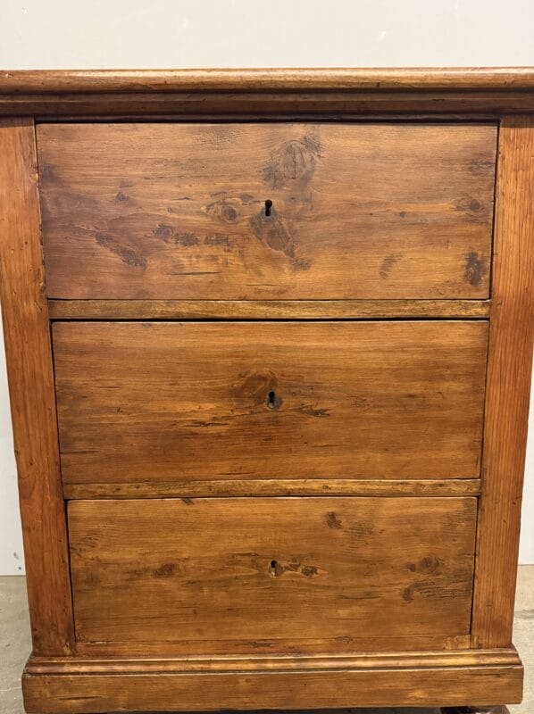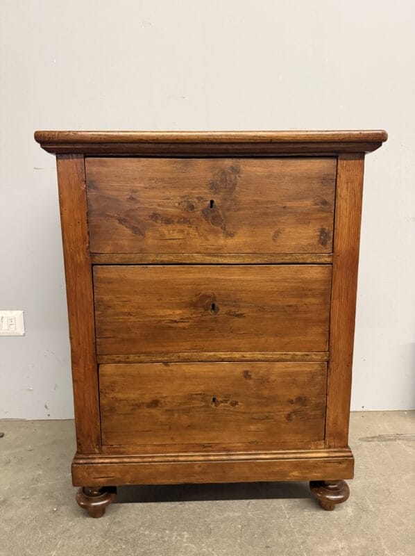 Antico mobiletto credenzino toscano tre cassetti, epoca XIX sec., mis 84x66x49cm. Arte povera, appena restaurato con finitura a cera d’api. Presente chiave.
