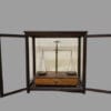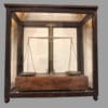 BILANCIA CON PESI ENTRO TECA IN LEGNO E VETRO.