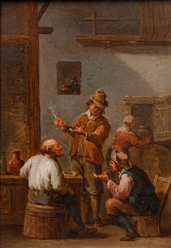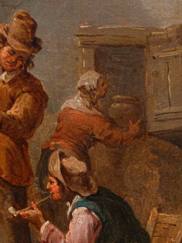 La pittura di genere è sempre stata considerata, rispetto alla pittura di storia e a quella sacra, un genere minore. Le scene di vita quotidiana sono tuttavia un documento storico preziosissimo che ci permette di comprendere appieno le abitudini delle persone di ogni classe sociale in un determinato periodo storico. Tra le scene di genere più spesso rappresentate per quanto concerne il panorama pittorico delle Fiandre di XVII secolo vi sono quelle all’interno delle taverne, luogo di incontro e di svago della borghesia mercantile così come delle frange popolari. È solitamente la borghesia a richiedere questo tipo di pitture caratterizzate spesso dal piccolo formato dei quadri. Sono immagini che raccontano la quotidianità delle taverne nel suo aspetto più genuino.