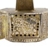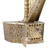 Un raffinato esempio di arte decorativa, questo Carillon a forma di Arpa unisce eleganza musicale e maestria artigianale. Realizzato in bronzo argentato e finemente cesellato con motivi floreali, è un oggetto decorativo ricco di fascino e storia. La struttura a forma di arpa classica ospita corde decorative e poggia su una base ottagonale che funge da custodia per il meccanismo musicale, attivabile tramite una piccola chiave laterale. Meccanismo totalmente funzionante. Stile Neoclassico, provenienza italiana del XIX secolo.