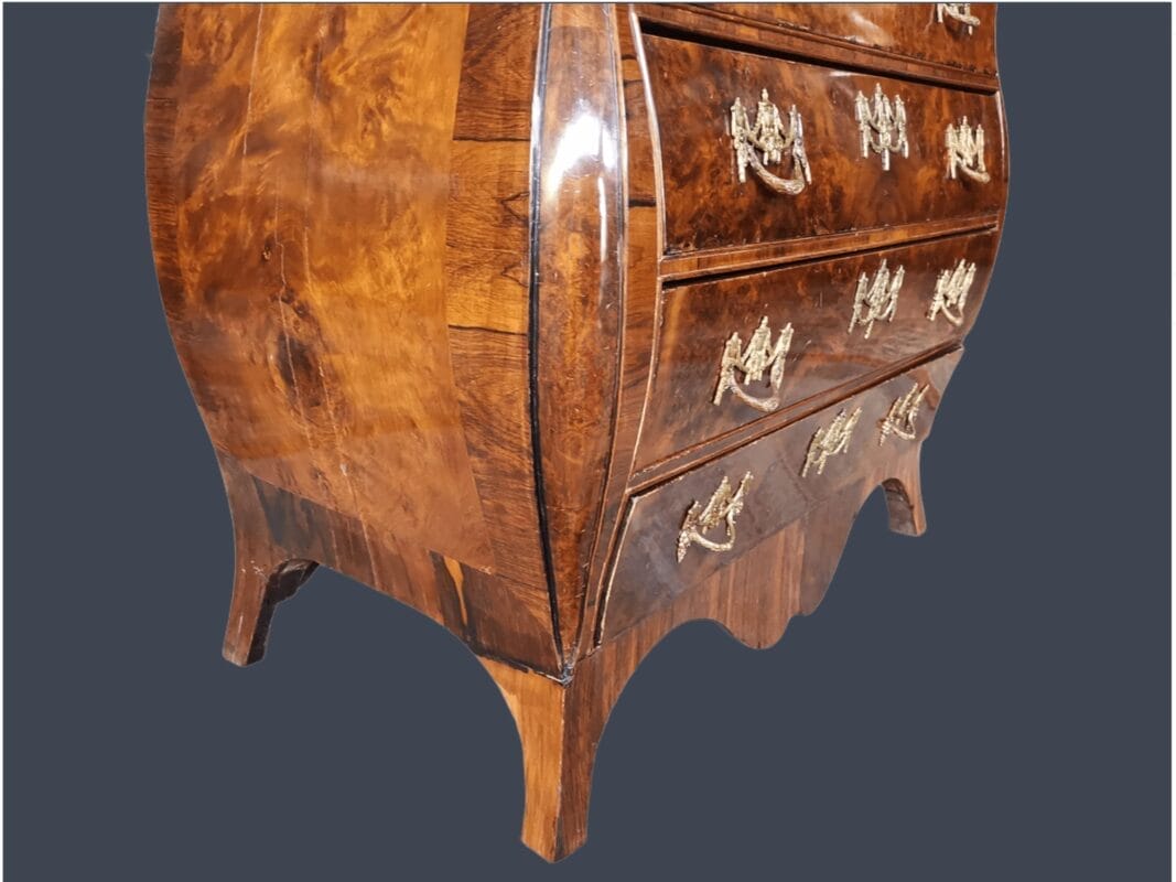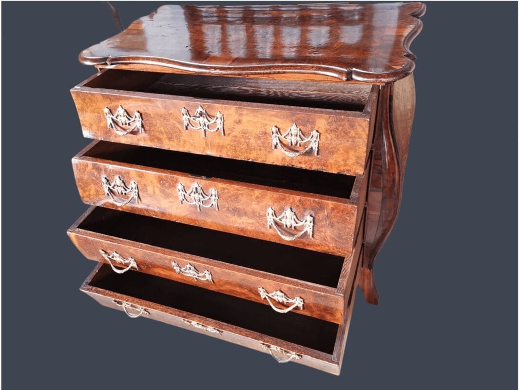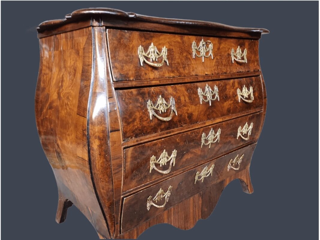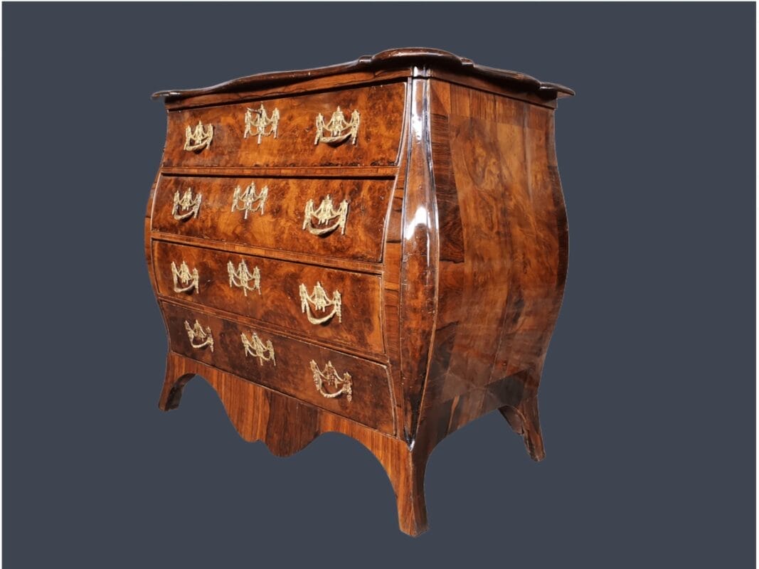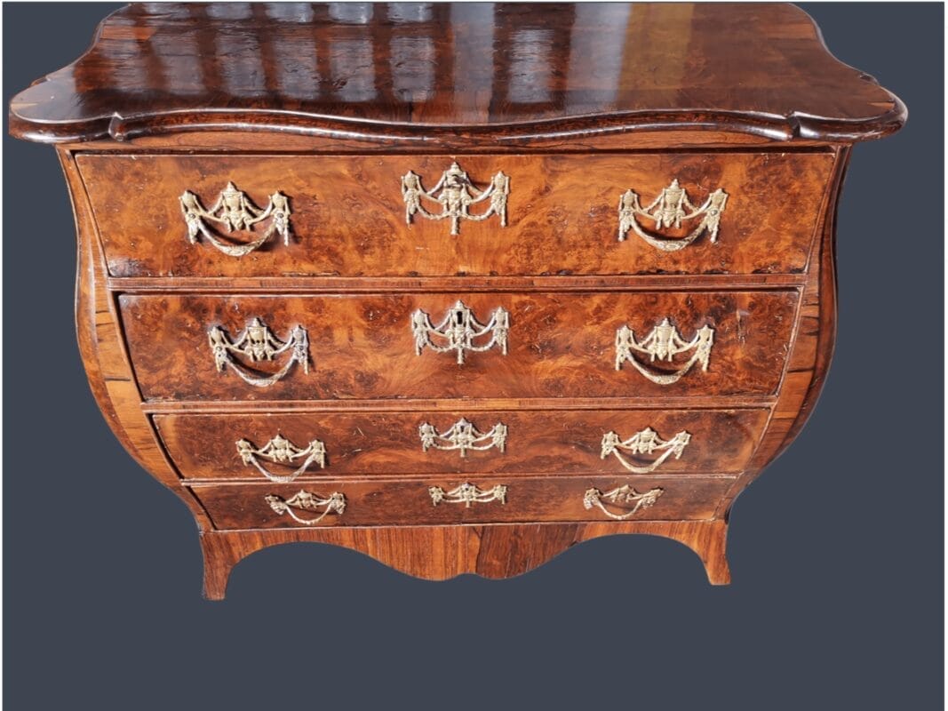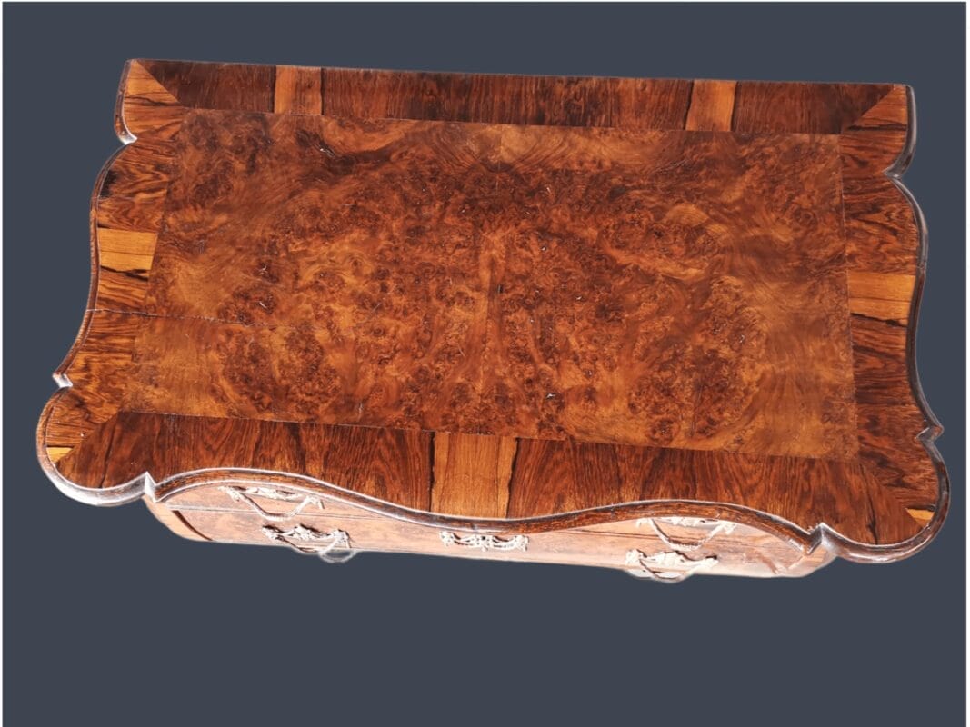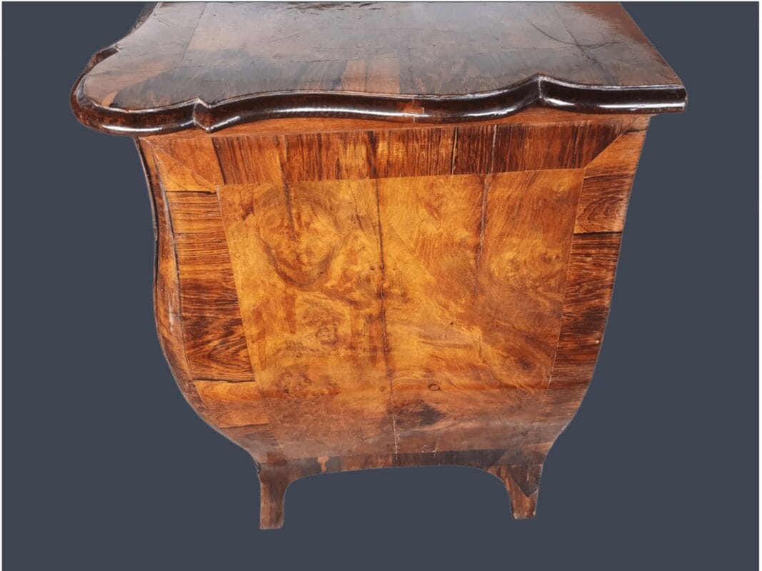 CASSETTONE MOSSO IN PALISSANDRO E NOCE LUIGI XV EPOCA XVIII SECOLO SI PRESENTA CON SERRATURA E FERRAMENTA ORIGINALE OGGETTO ORIGINALE D’EPOCA NON RIPRODUZIONE ESEGUITO RESTAURO CONSERVATIVO. PERFETTA PATINA