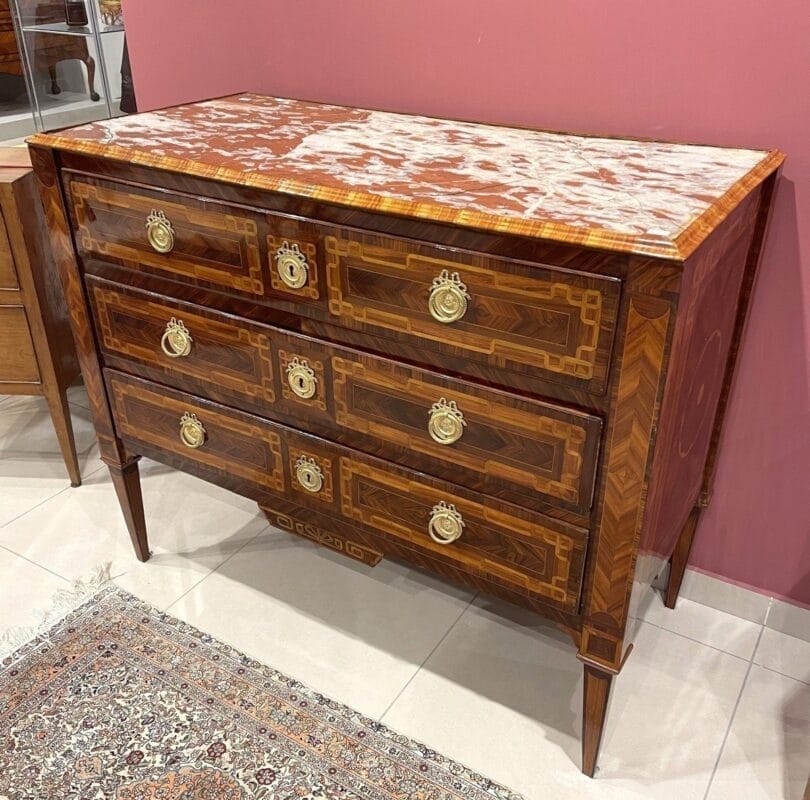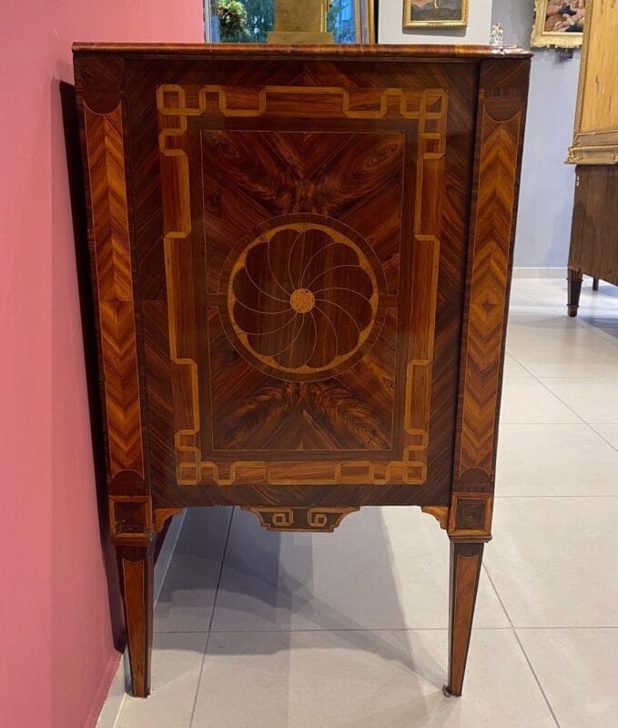 Antico e raro Cassettone Luigi XVI Siciliano di epoca della seconda metà del Settecento e provenienza italiana (Sicilia).