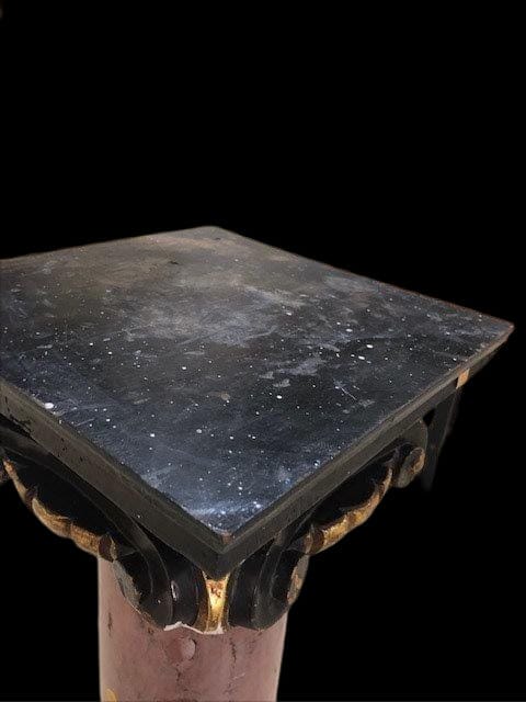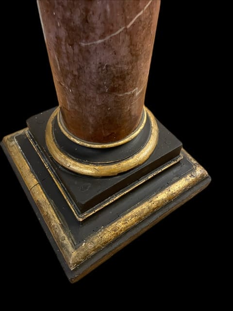 COLONNA IN MARMO ROSSO CON BASE IN LEGNO LACCATO.
