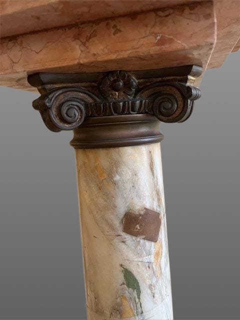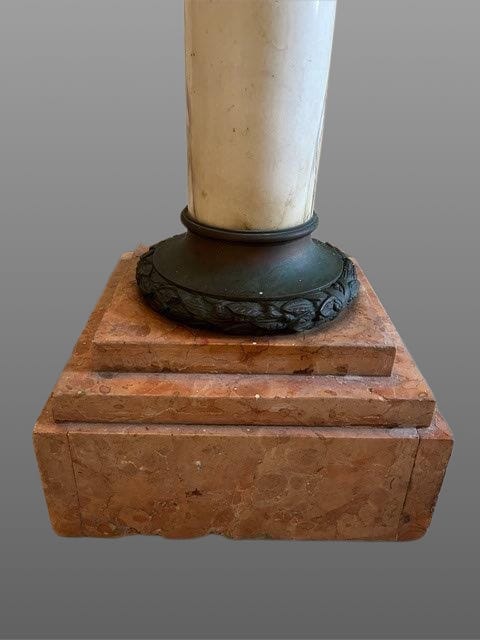 COLONNA IN MARMO CON APPLICAZIONI IN BRONZO BRUNITO.