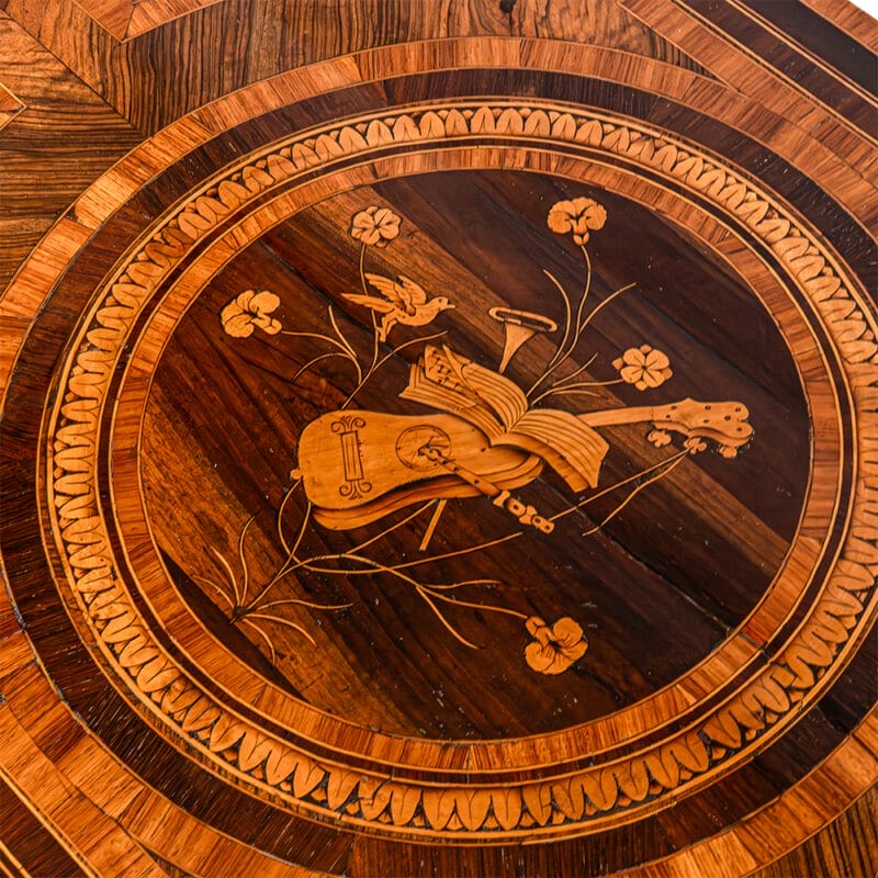 Le proporzioni armoniose, la qualità dell’intaglio e l’eccezionale maestria nell’arte dell’intarsio fanno di questo mobile un esemplare di grande rarità e pregio, rappresentativo della migliore ebanisteria lombarda della fine del XVIII secolo.