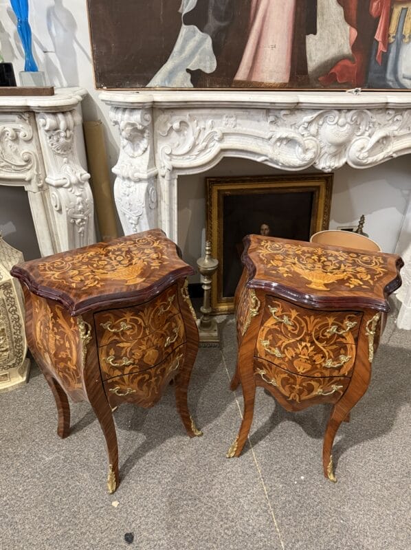 Comodini intarsiati in coppia in buono stato di conservazione