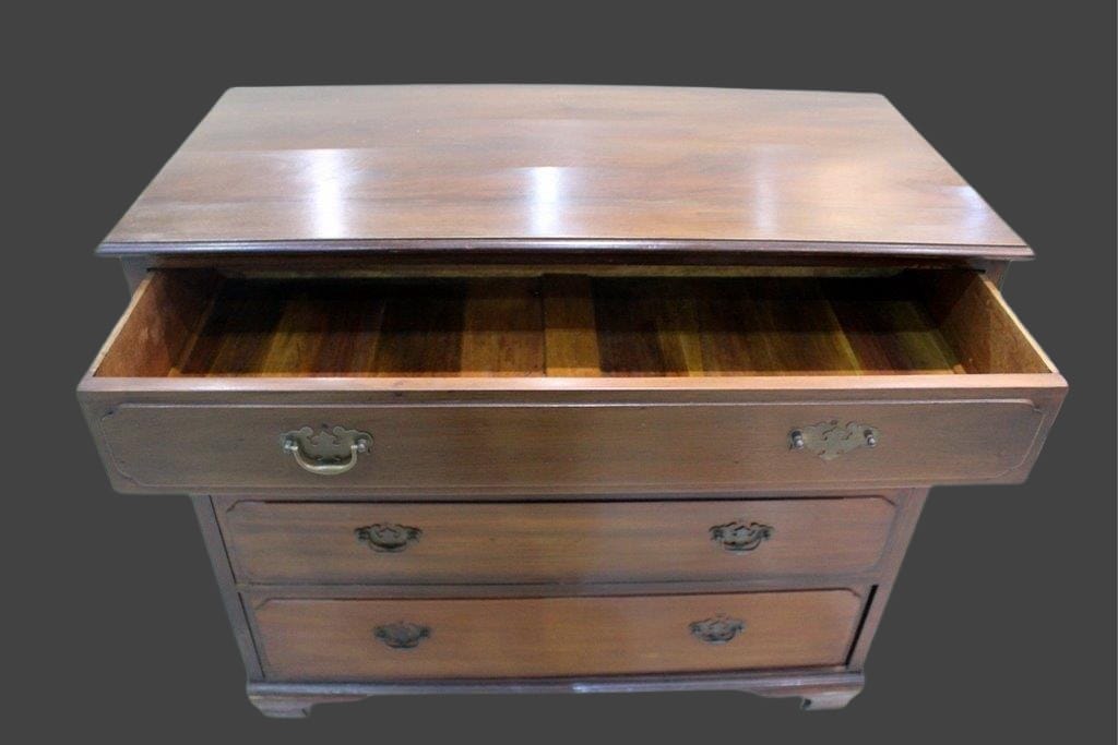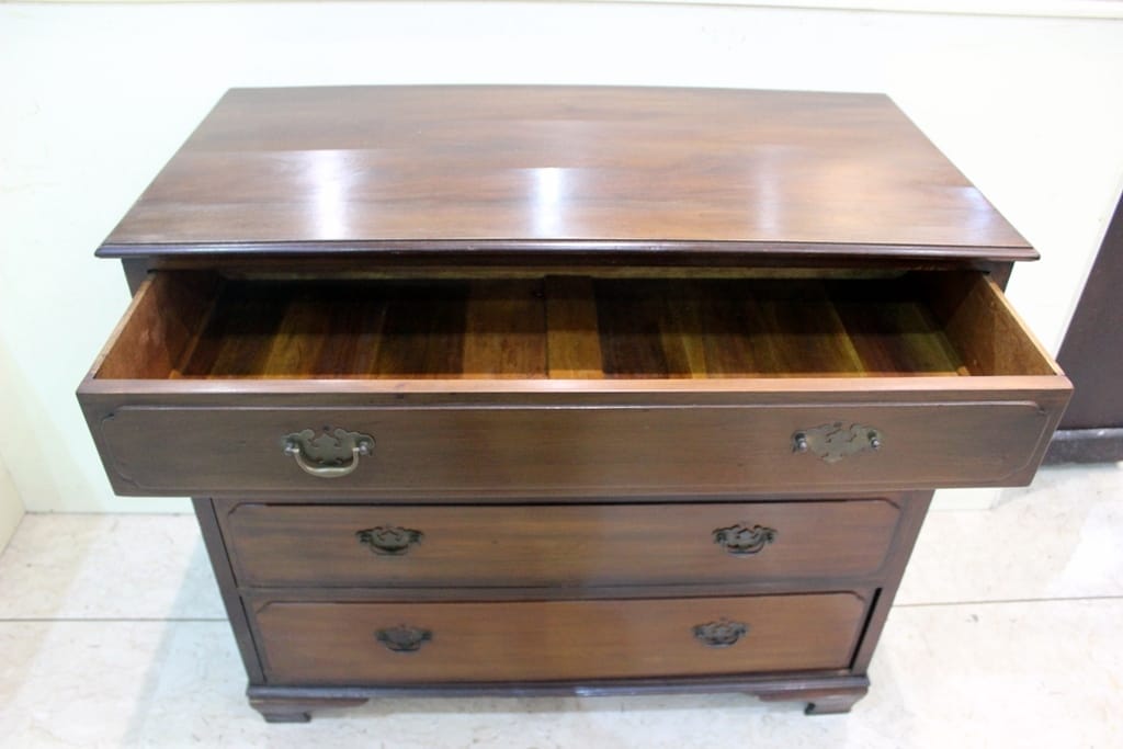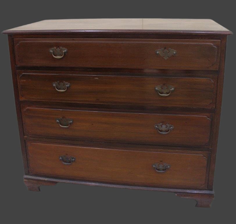 Piccolo cassettone in mogano con maniglie in ottone.