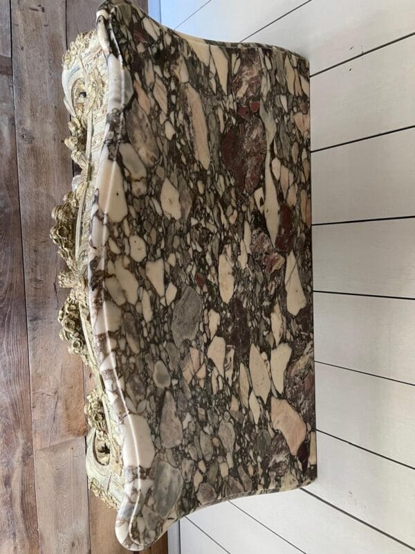 Magnifique console sculptée avec une très jolie patine, Louis XV transition d’époque datant du XVIIIe siècle. Aucune restauration ,marbre brèche
