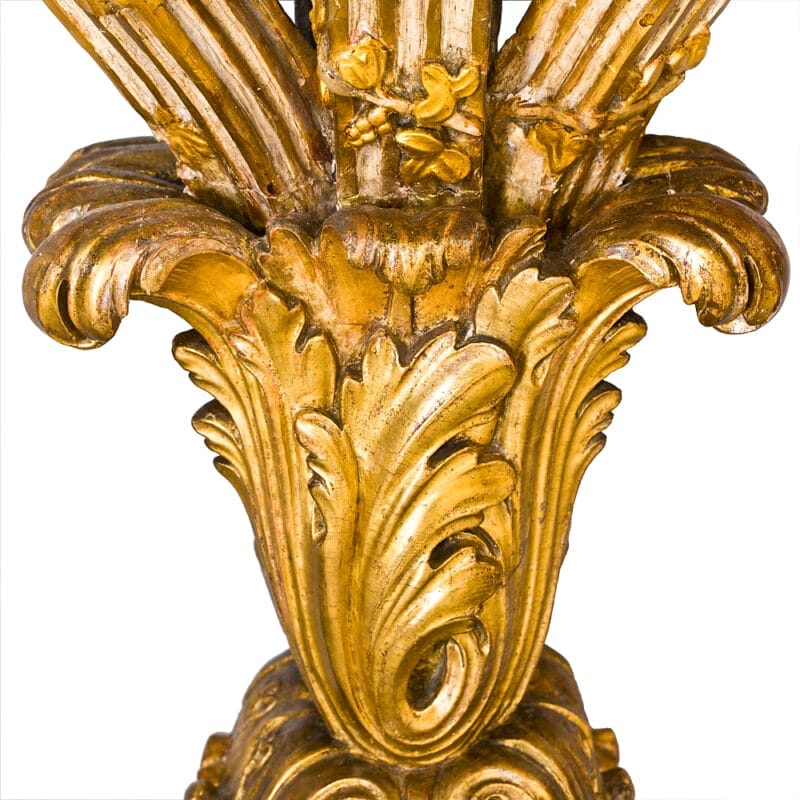 Importante Consolle Luigi XIV, Napoli. Realizzata in legno laccato e dorato con piano in marmo nero porto venere. Di epoca i primi del XVIII secolo e provenienza napoletana.