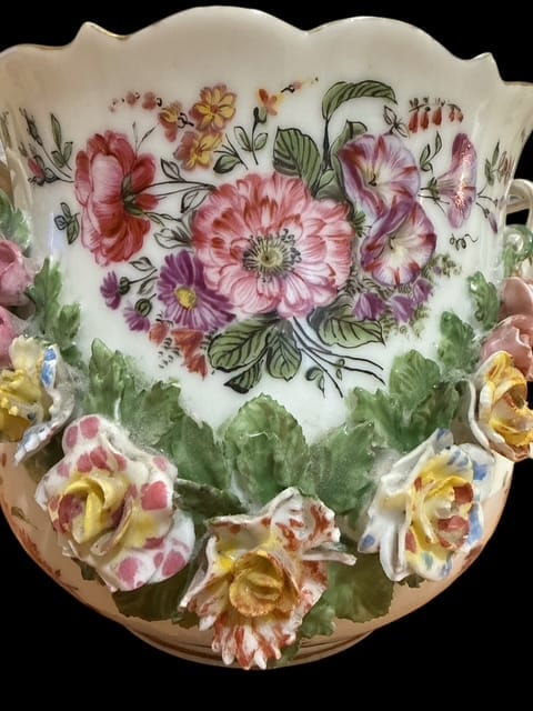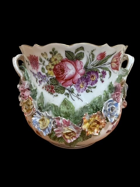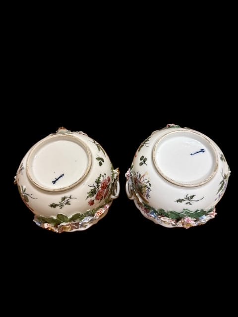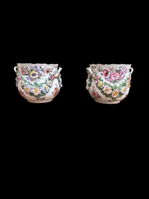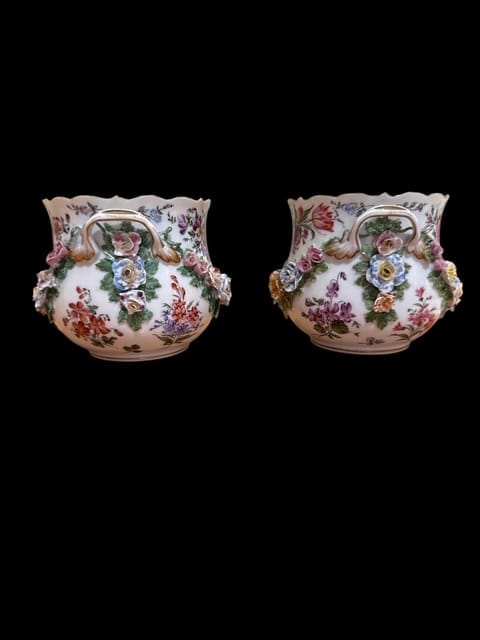 Coppia di cachepot in porcellana di Meissen decorata a motivi floreali.