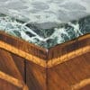 Lastronati in legno di palissandro e con intarsi in vari legni esotici. Lastra in marmo verde delle Alpi. Gamba troncopiramidale. Interni dei cassetti in noce. I mobili sono filettati sui fianchi mentre sul davanti con i cassetti a “specchio” oltre ad i filetti recano con un cesto di fiori, usanza del figlio del maestro Giuseppe Maggiolini. Carlo Francesco (1758/1834) noto come collaboratore ed erede della bottega del padre.
