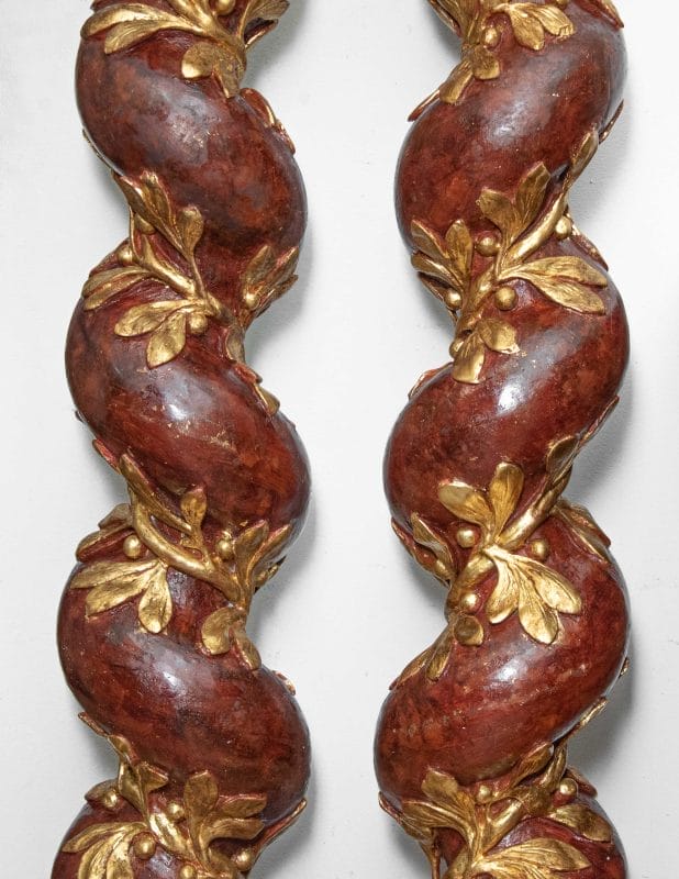 La colonna tortile è meglio conosciuta con il nome di colonna Salomonica poiché secondo la tradizione cristiana sono l’elemento suggerito da Dio a Salomone nel momento della costruzione del Tempio di Gerusalemme (X secolo) e perciò considerate architettura divina. Utilizzate già nella prima età imperiale, soprattutto nei sarcofagi, la colonna tortile è una variazione architettonica del classico fusto longilineo che si diffuse anche nell’ambiente paleocristiano. È a partire dal 70 d.c che la colonna tortile acquista un significato religioso: dopo la distruzione del tempio di Gerusalemme l’imperatore Costantino dona le colonne tortili di marmo pario per adornare l’altare della erigenda basilica dedicata all’apostolo Pietro. Queste colonne, in origine sei poi aumentate a dodici da papa Gregorio III nel XVII secolo, andarono a formale l’antica pergula (struttura divisoria tra spazio del coro e la navata centrale) di San Pietro.