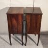 Coppia di comodini periodo Impero, Napoleonico, in noce. Origine Italia, Veneto, con anta e cassetto, buone condizioni e mai restaurati o manomessi. Arricchiti da colonne ebanizzate. Gamba a sciabola alta che ne risalta l’origine Veneta. Internamente furono rivestiti da carta a fiori ad oggi usurata. Il prezzo è trattabile. Vengono venduti come trovati.