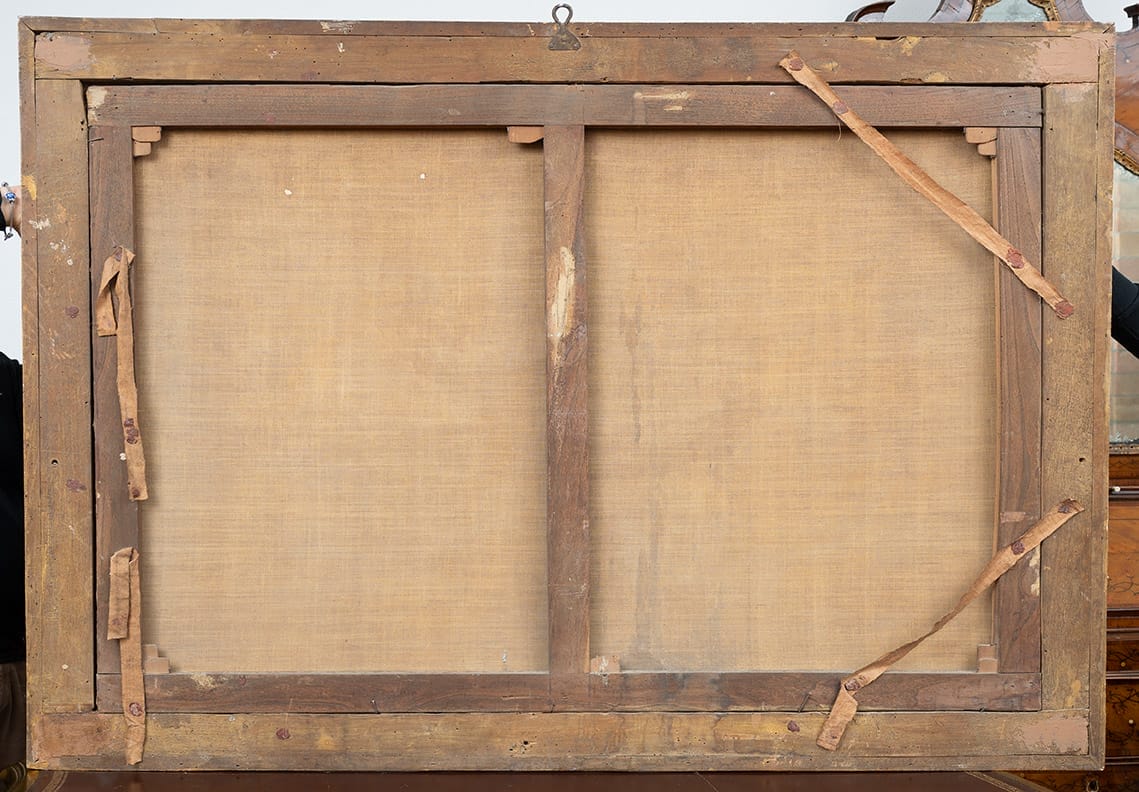 Cenni Storici: Accompagnate da cornici dorate coeve, le tele si ascrivono al paesaggista napoletano Domenico Brandi. Formatosi con il padre, abile prospettico e decoratore, il nostro artista guarda alla tradizione paesistica partenopea, in particolare a quella del Gargiulo, prima di intraprendere il viaggio a Roma dove svolse la sua attivita’ nella bottega di Rosa da Tivoli. Nella Citta’ Eterna Domenico acquisisce il gusto illustrativo e il delicato spirito bucolico del suo maestro. I nostri dipinti esprimono assai bene questa commistione tra tradizione letteraria e visione pittoresca della natura, che sara’ predominante nel corso di tutta la sua produzione. Infatti, sara’ ricordato dal De Dominici quale pittore di soggetti animalier, con esiti che influenzeranno l’arte di Michele Pagano (Napoli, 1697 ; 1732) e Nicola Viso (1724 ; 1742).