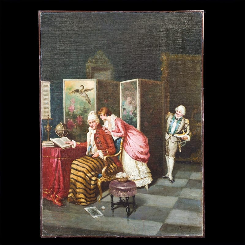 Coppia di Dipinti olio su tela, napoletani, firmati Carlo Passarelli (1860 – 1916), raffigurante scene di corte.