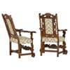 Straordinaria ed esclusiva coppia di poltrone Luigi XIII dei primi del XVII secolo e provenienza veneta (Venezia). Realizzata in legno di noce finemente intagliato generando sinuosi decori.