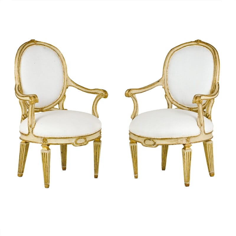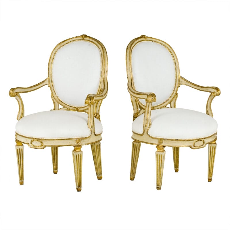 Esempio raffinato del gusto neoclassico partenopeo, queste poltrone rappresentano un perfetto equilibrio tra eleganza formale e comfort funzionale, tipico della produzione di area borbonica.