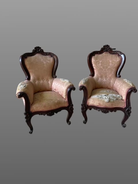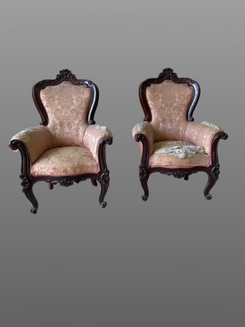 Coppia di poltrone in palissandro intagliato.