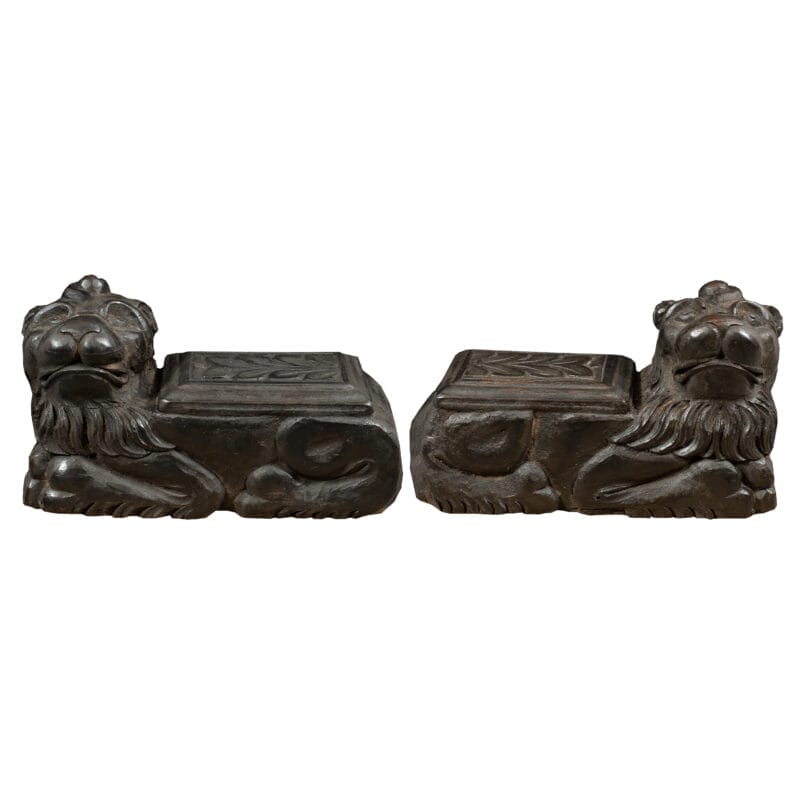 Coppia di sculture in legno intagliato – Leoni arcaici. Italia, XVIII secolo.
