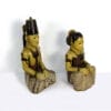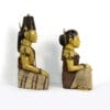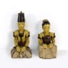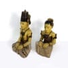 Coppia di sculture in legno policromo, Giappone, XIX/XX secolo, raffigurante due sposi, seduti con vesti e copricapi tradizionali; altezze cm 57; cm 45