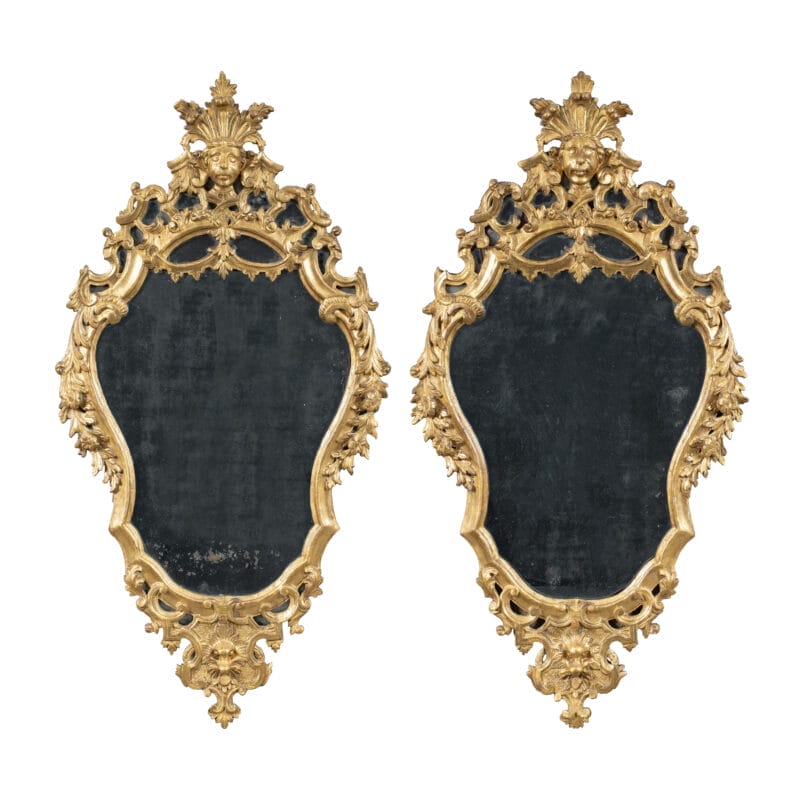 Coppia di specchiere in legno intagliato e dorato. Italia, XVIII secolo.