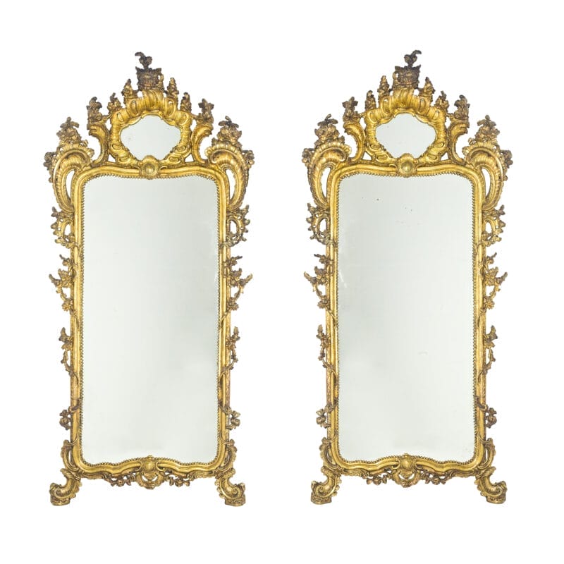 Coppia di Specchiere Luigi XV Napoli in argento a mecca, di epoca metà del XVIII secolo.