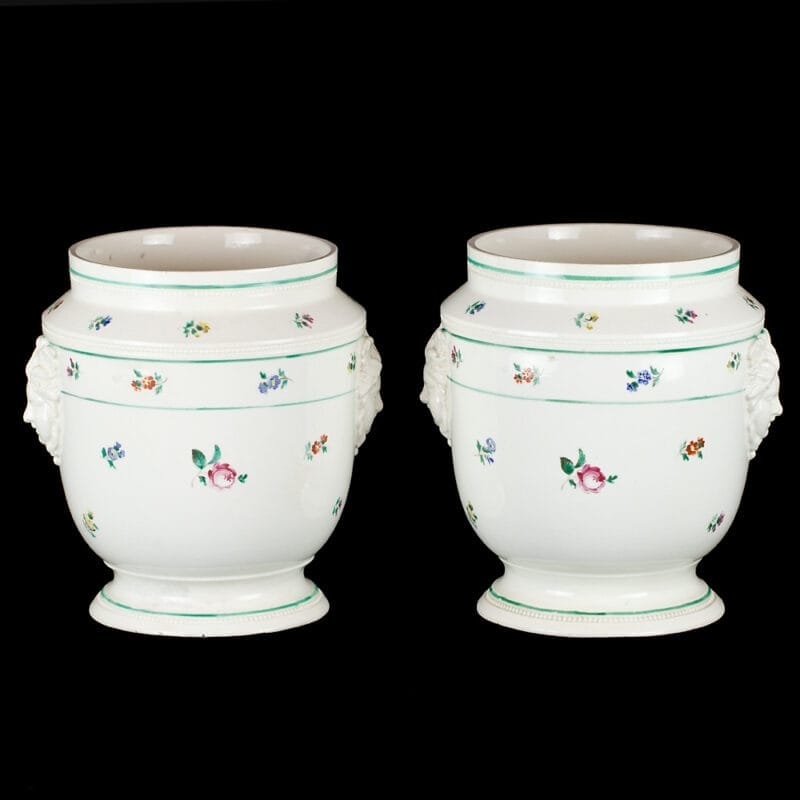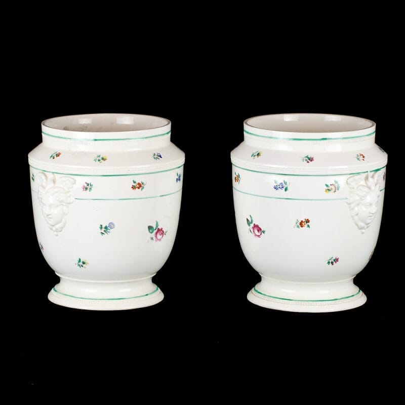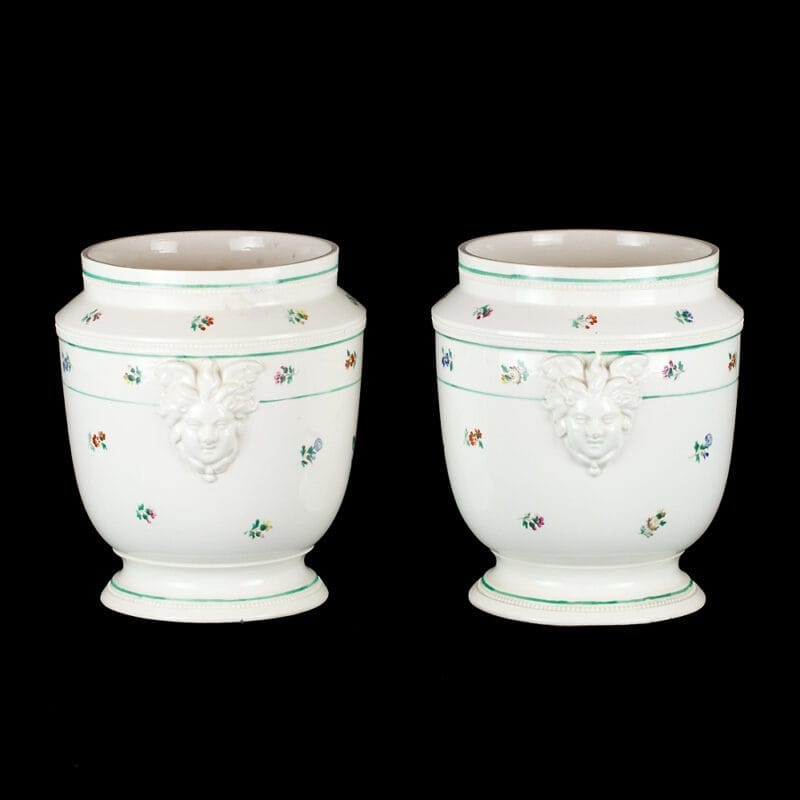 Graziosissima coppia di Vasi in terraglia, napoletani, di manifattura “Ferdinando Del Vecchio”, di epoca fine del Settecento – primi dell’Ottocento.