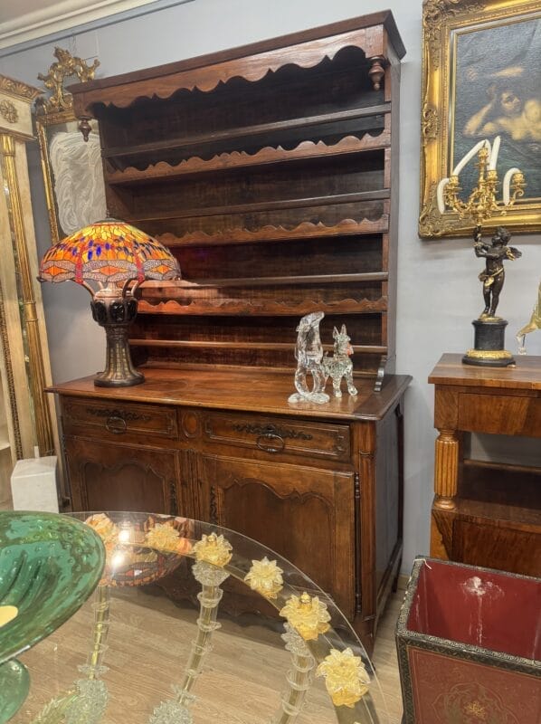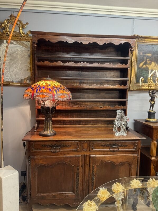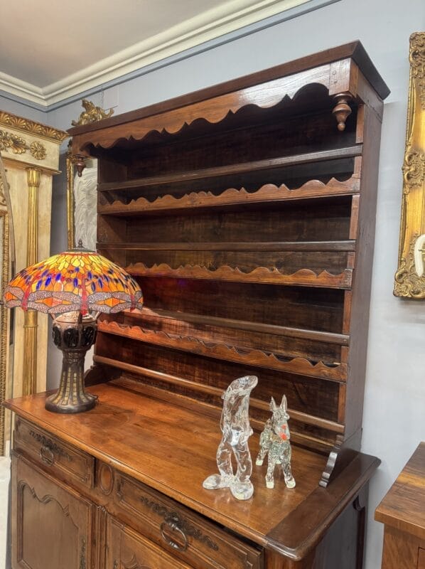 Credenza in noce massello arricchita da intagli con alzata in buone condizioni di mantenimento