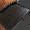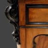 Credenza a due ante e due cassetti, in radica di noce con profili intagliati e tinti a finto ebano, piano estraibile sui due laterali.