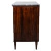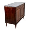 Ai lati spiccano raffinati intagli a motivi vegetali, eseguiti con grande maestria artigianale, mentre le maniglie ad anello in ottone cesellato aggiungono un tocco di eleganza tipico dell’epoca. Il tutto è sormontato da un piano in marmo grigio Bardiglio, caratterizzato da delicate sfumature che donano contrasto e luminosità.