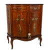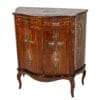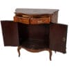 Il corpo principale si compone di due antine sottostanti un cassetto superiore sagomato, entrambi arricchiti da dettagli decorativi che donano al mobile un carattere aristocratico e ricercato. Il piano, anch’esso sagomato, conserva la patina autentica del tempo, contribuendo al fascino storico del pezzo.