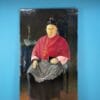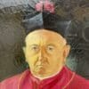 Antico dipinto ad olio su tela, raffigurante un religioso di inizi 900. Il parroco è seduto nel suo studio su di uno scranno mentre regge un libro.