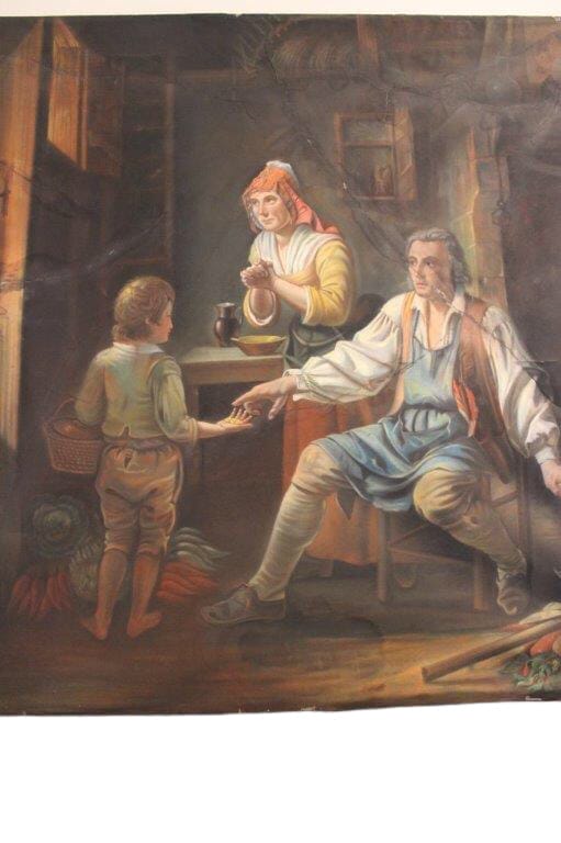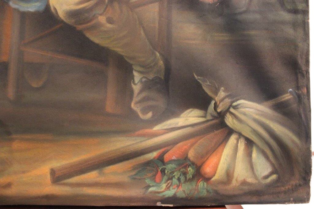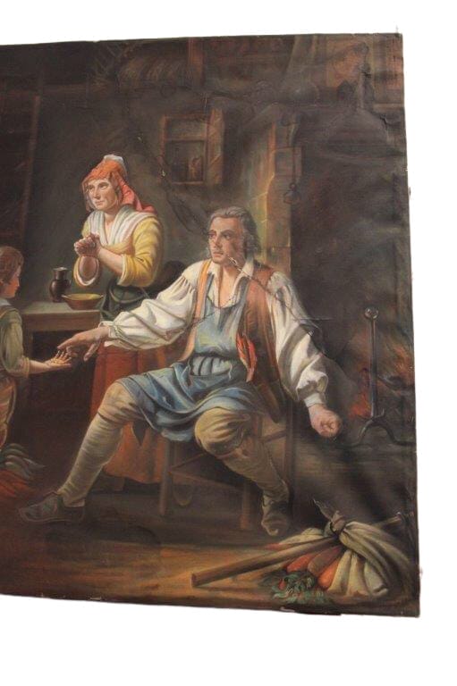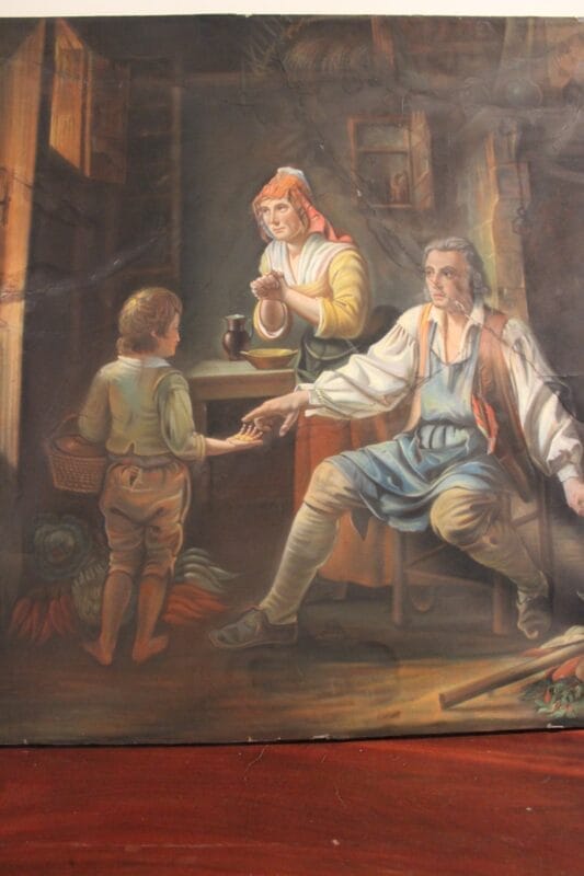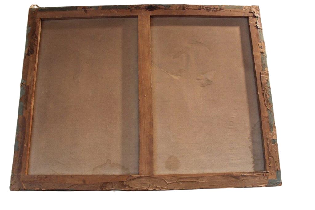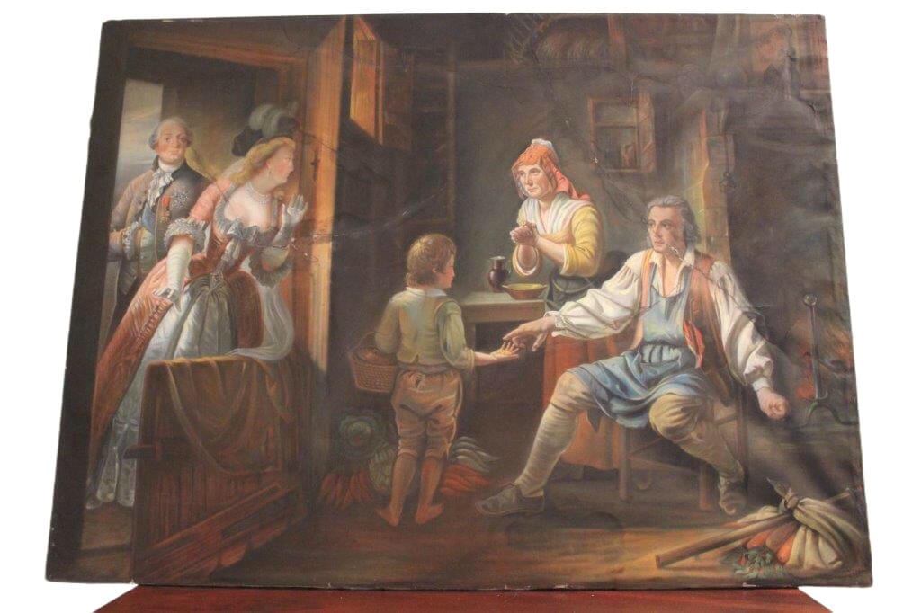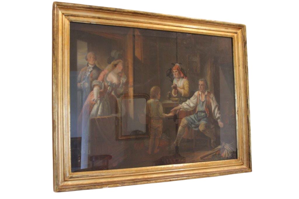 Dipinto pastello su carta raffigurante una scena d’interno. Cornice in legno dorato coeva.