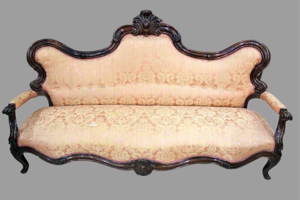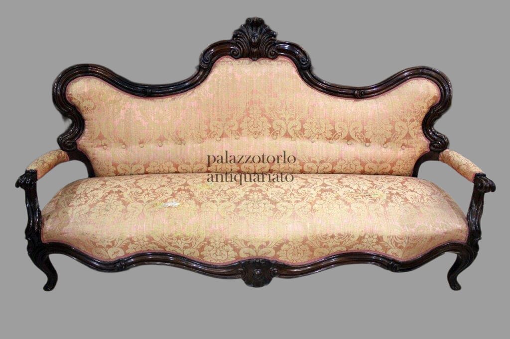 Divano in palissandro finemente intagliato.