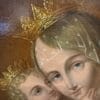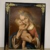 Antique painting of the Virgin and Child, oil on cardboard, 19th century, in an antique black lacquered frame with gold trim. Dimensions: 74x58cm including frame, painting only: 63x47cm. In good condition.