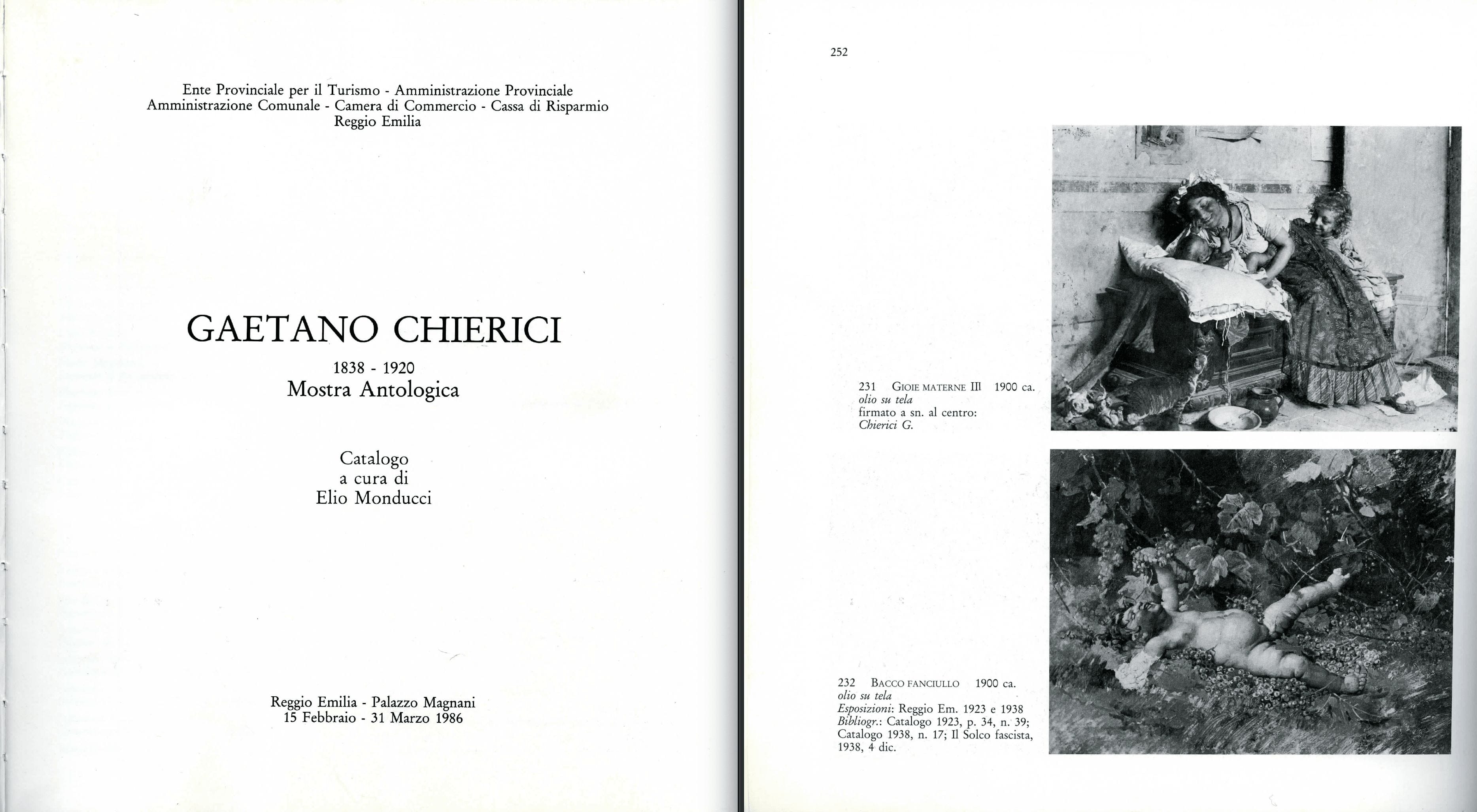 L’opera di Gaetano Chierici ha inizio negli anni 1851-1852 quando frequenta la Scuola di Belle Arti di Reggio Emilia e, di seguito, all’Accademia di Belle Arti di Modena ove mette già in mostra la propria abilità nelle rappresentazioni del corpo umano.