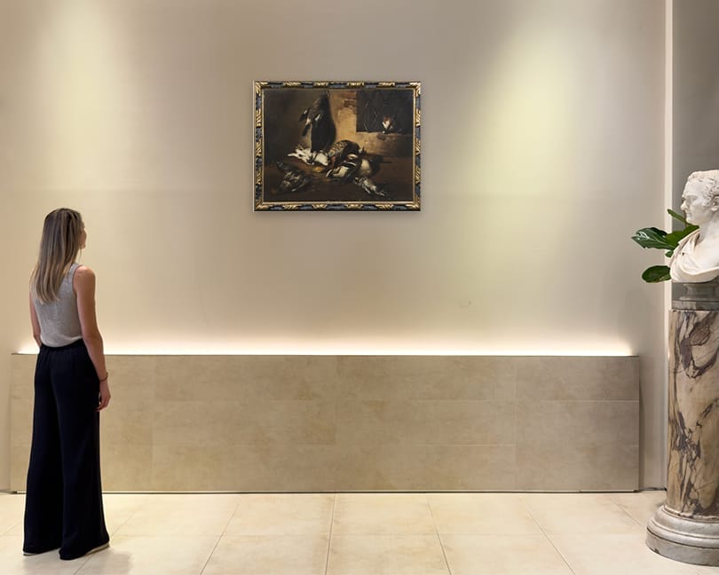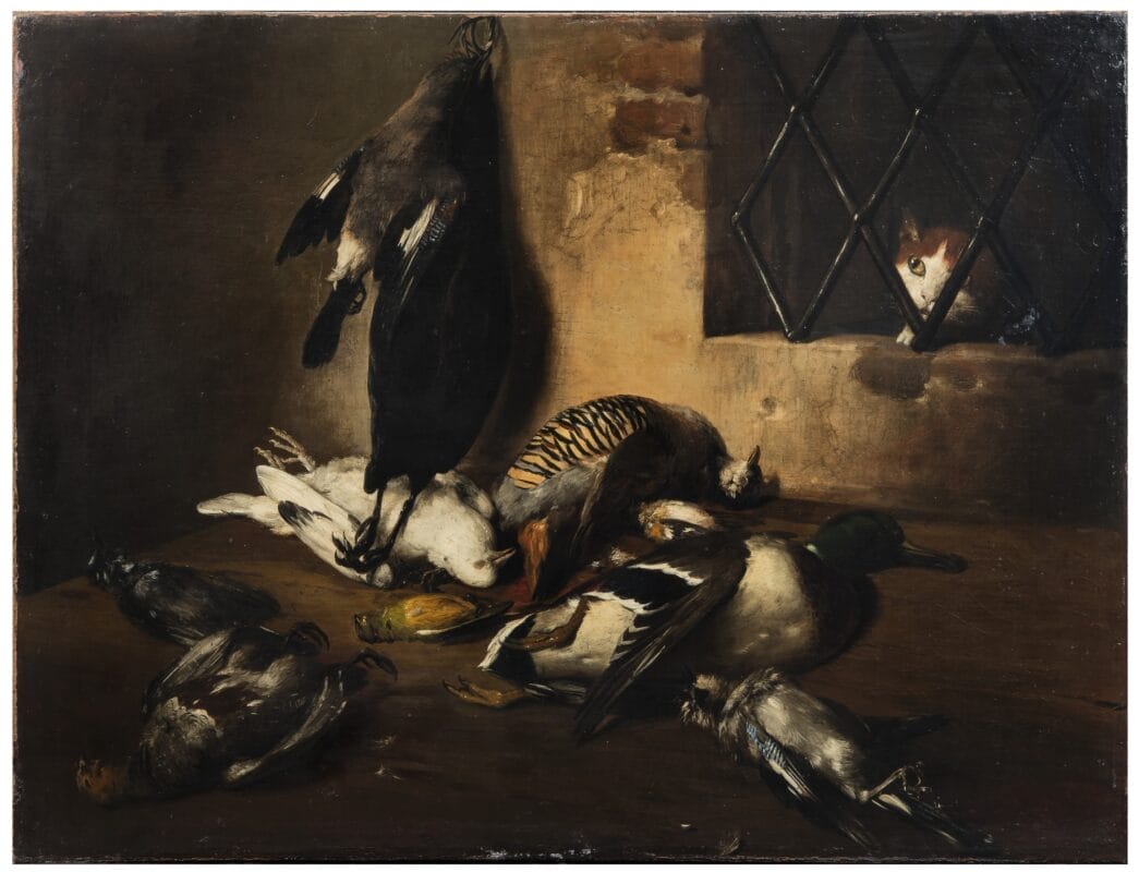 “Interno di dispensa con selvaggina di penna e gatto”,